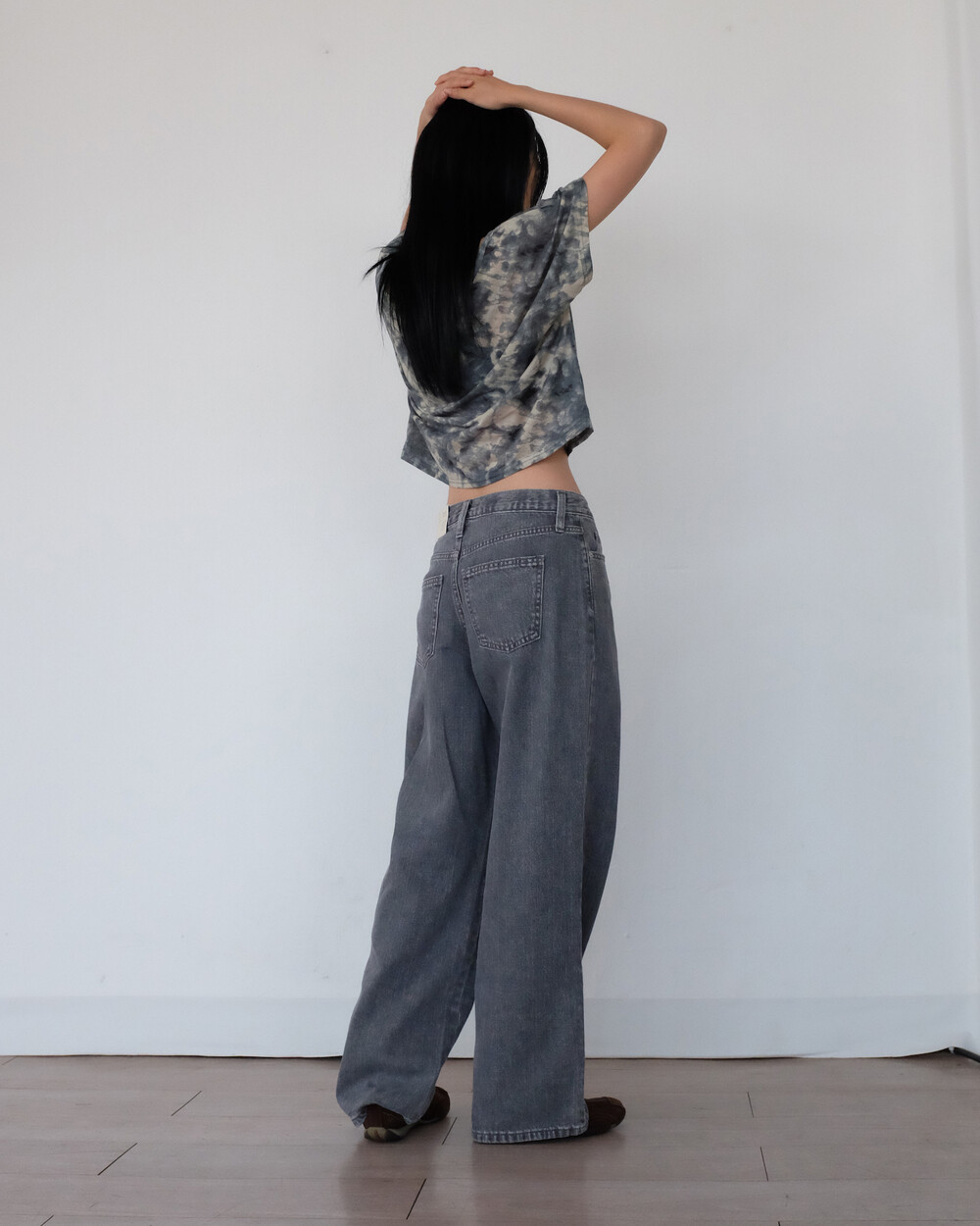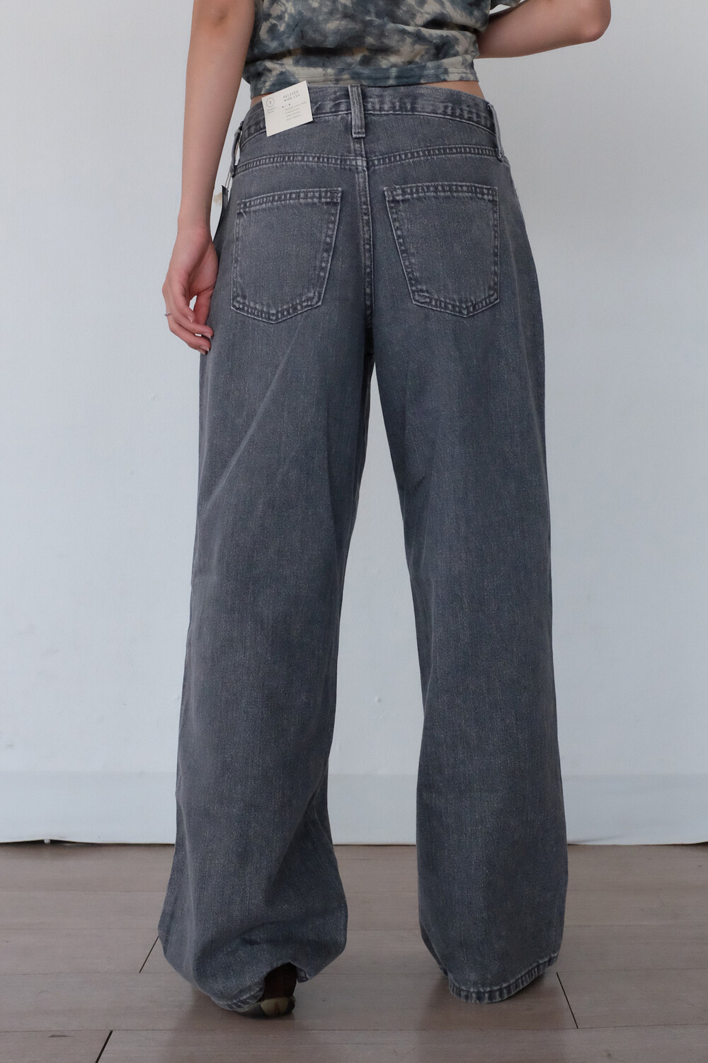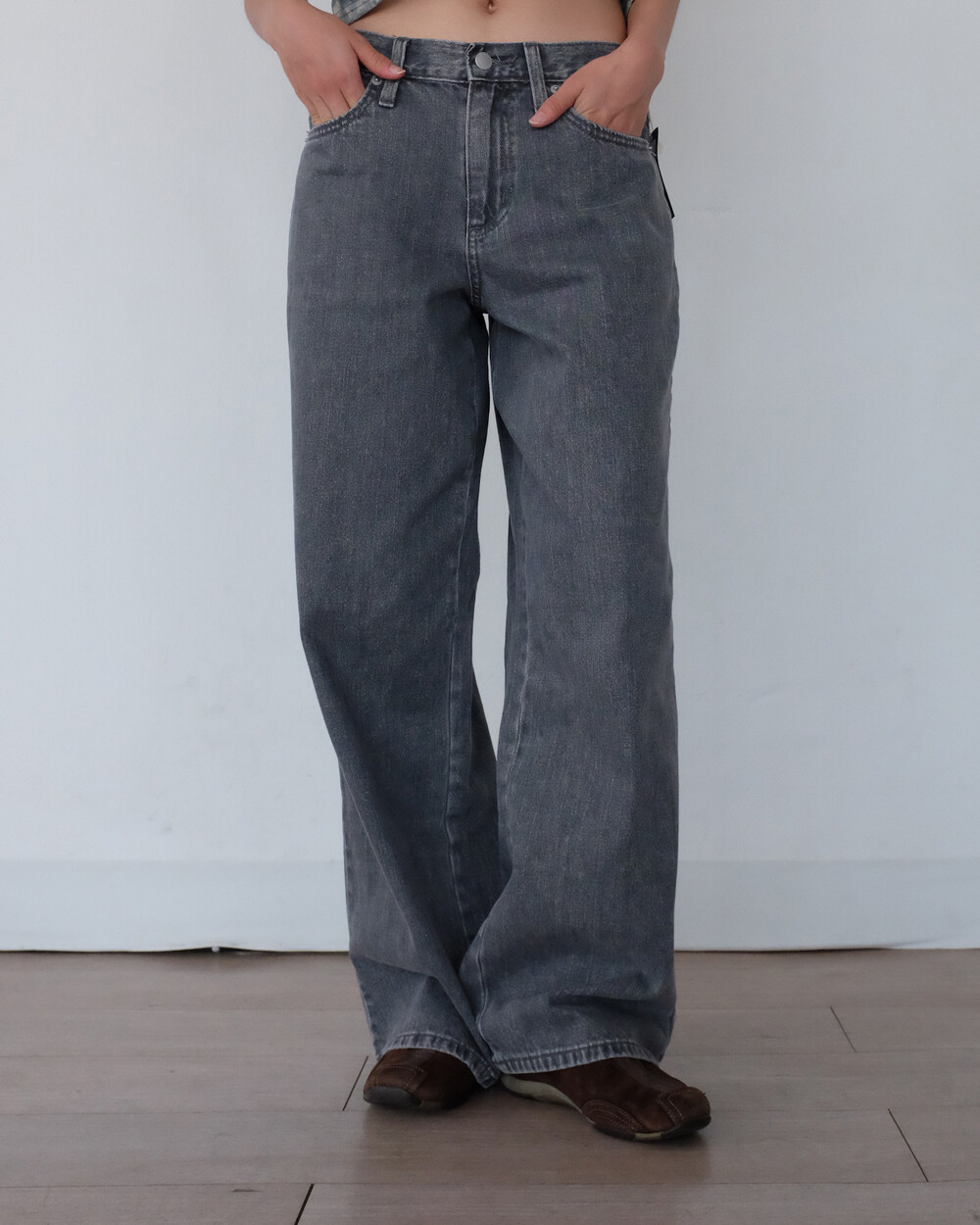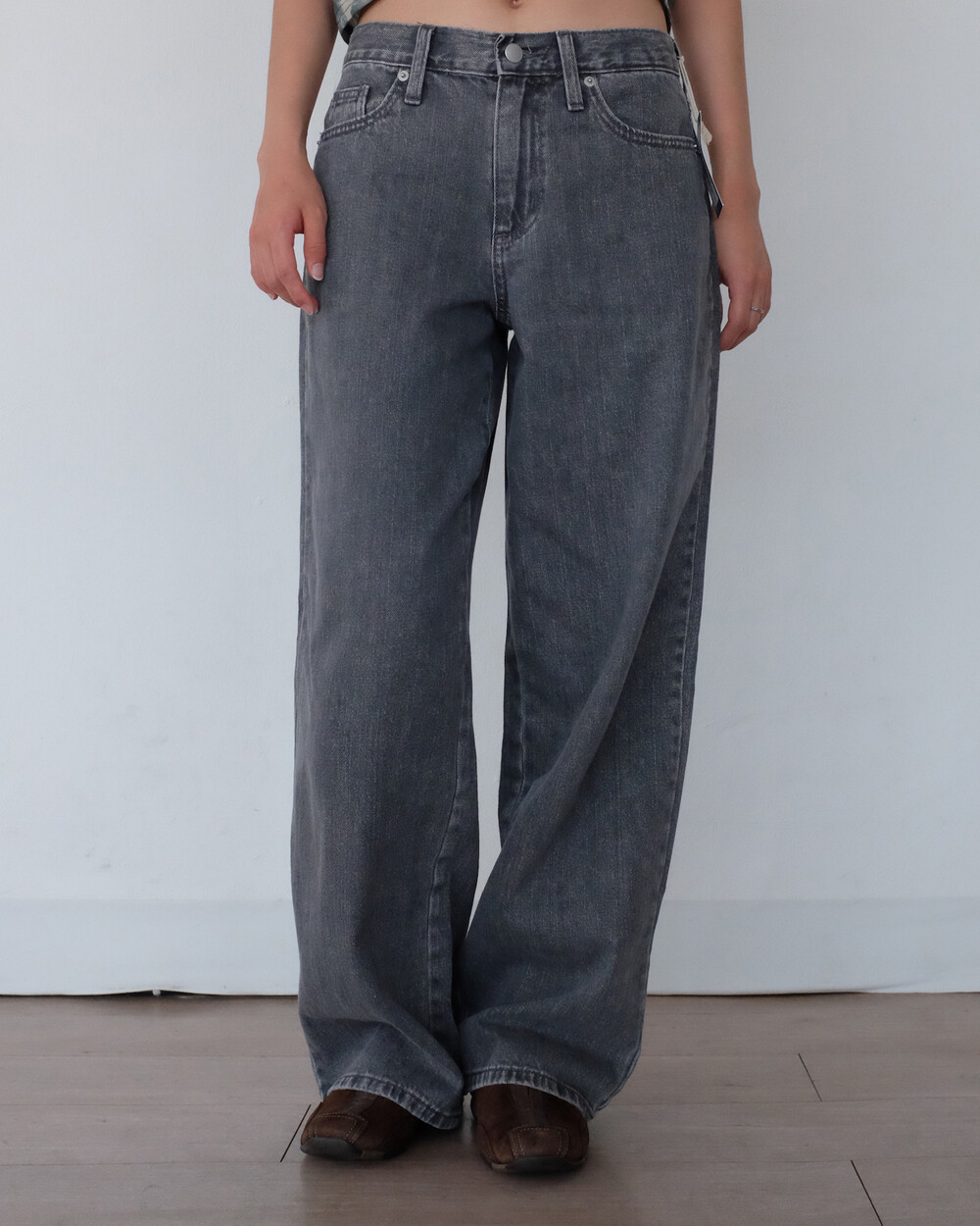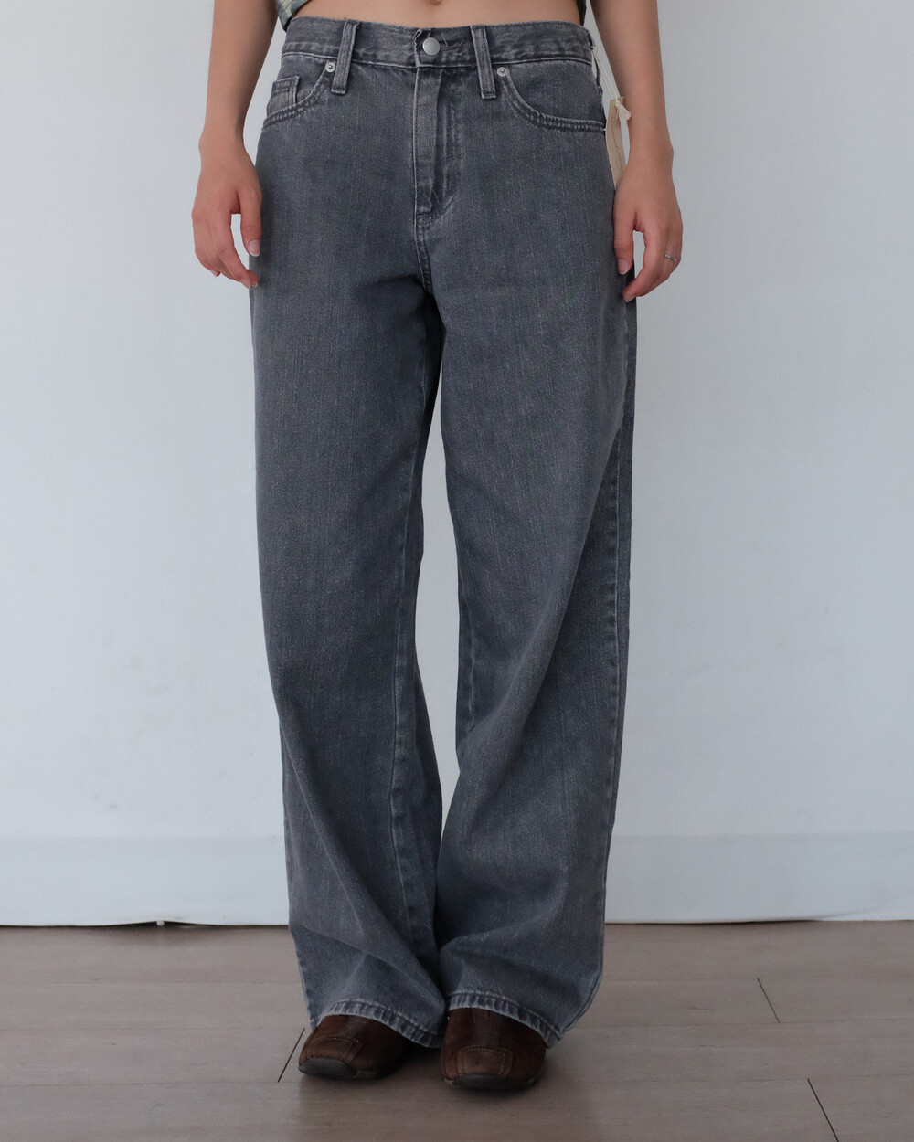 데일리 활용도 높은 진회색 와이드 데님 팬츠