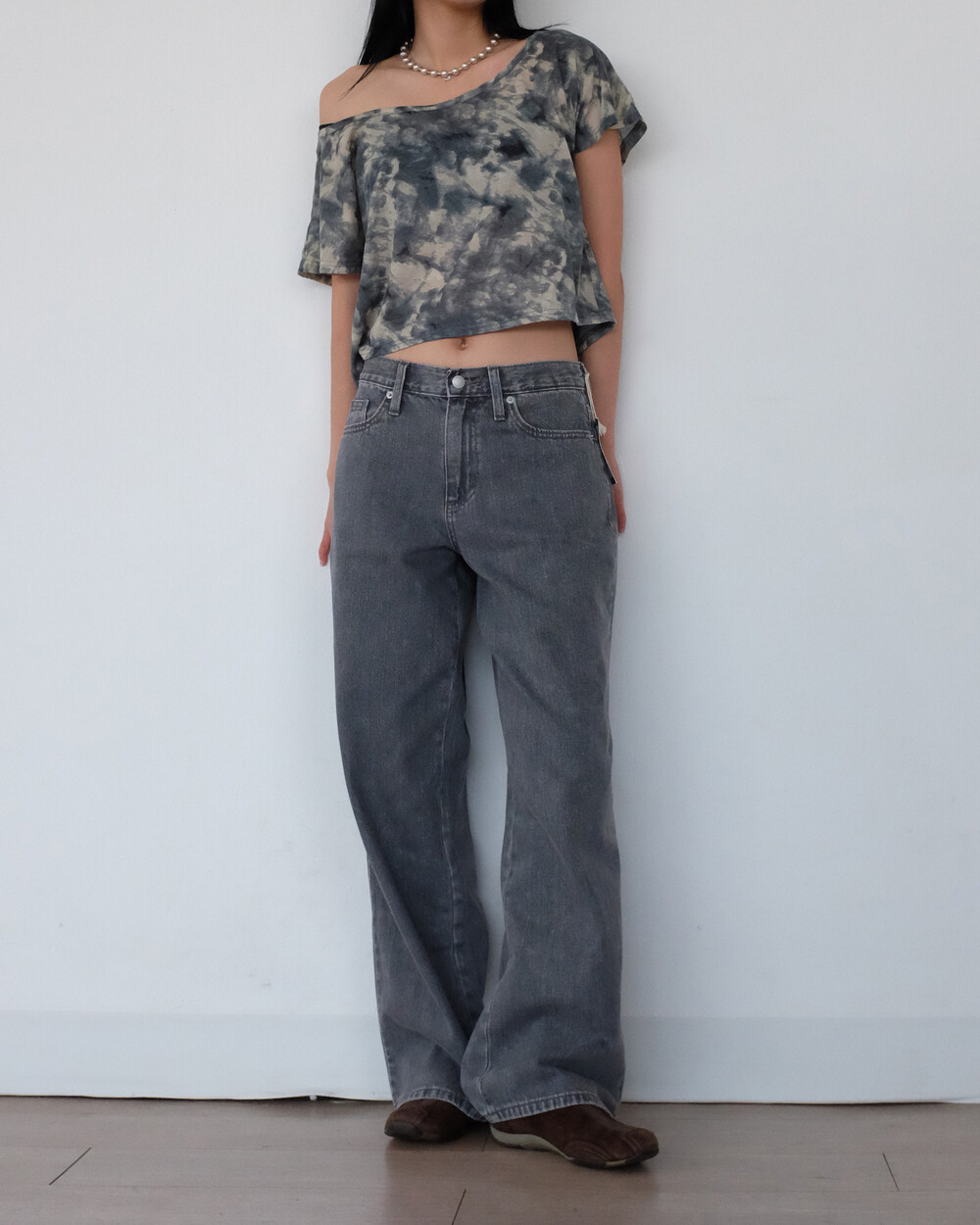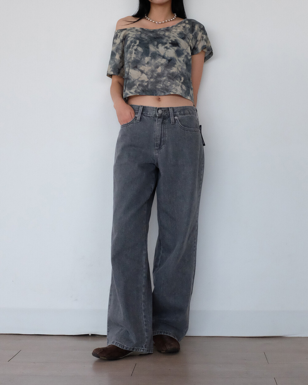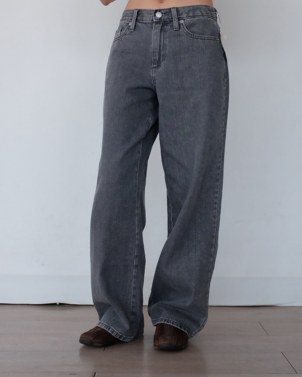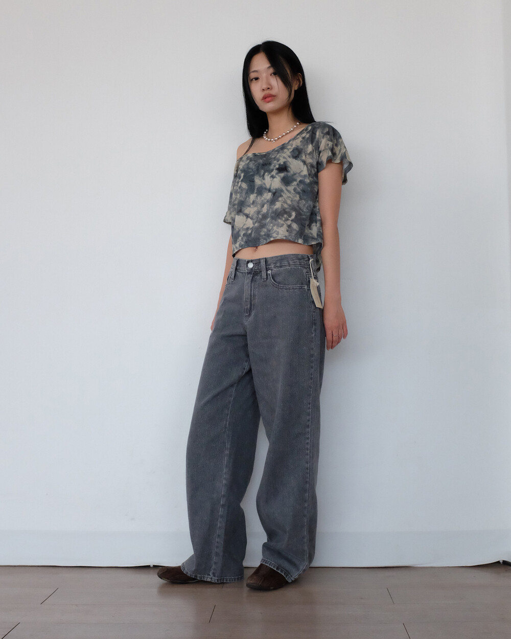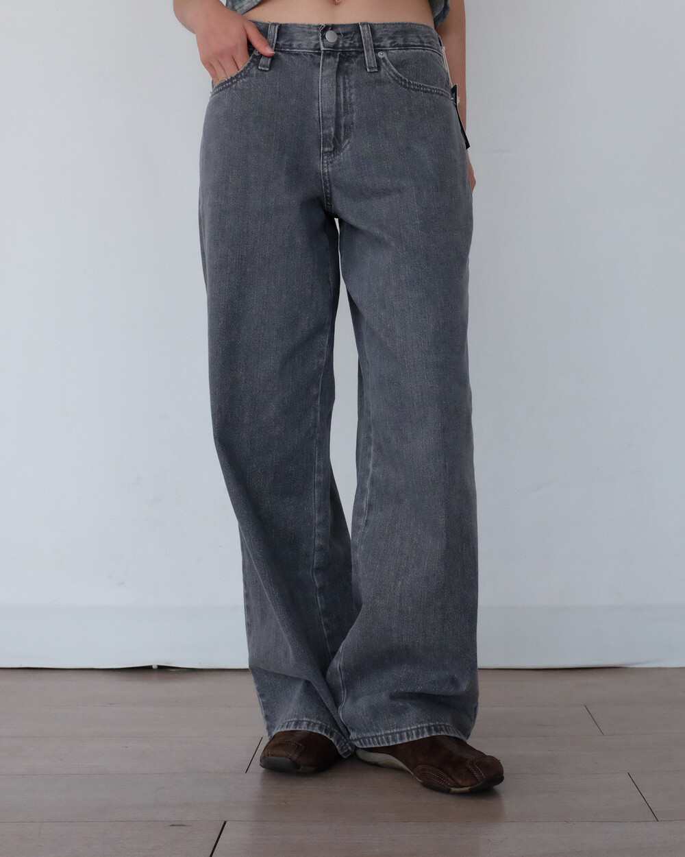 데일리 활용도 높은 진회색 와이드 데님 팬츠