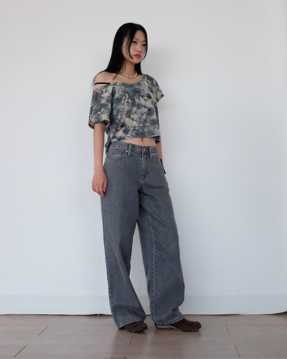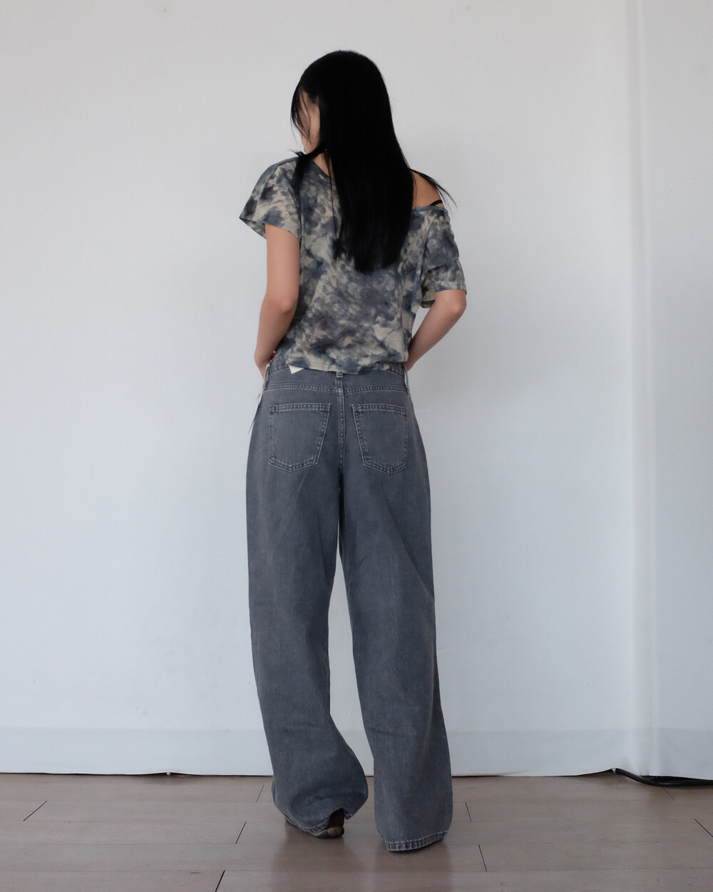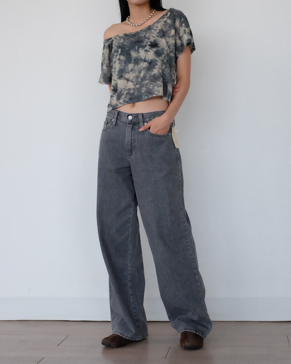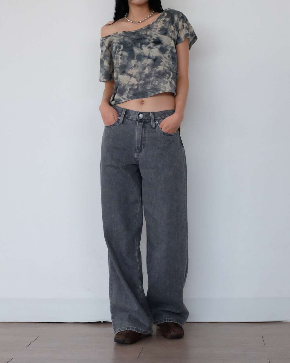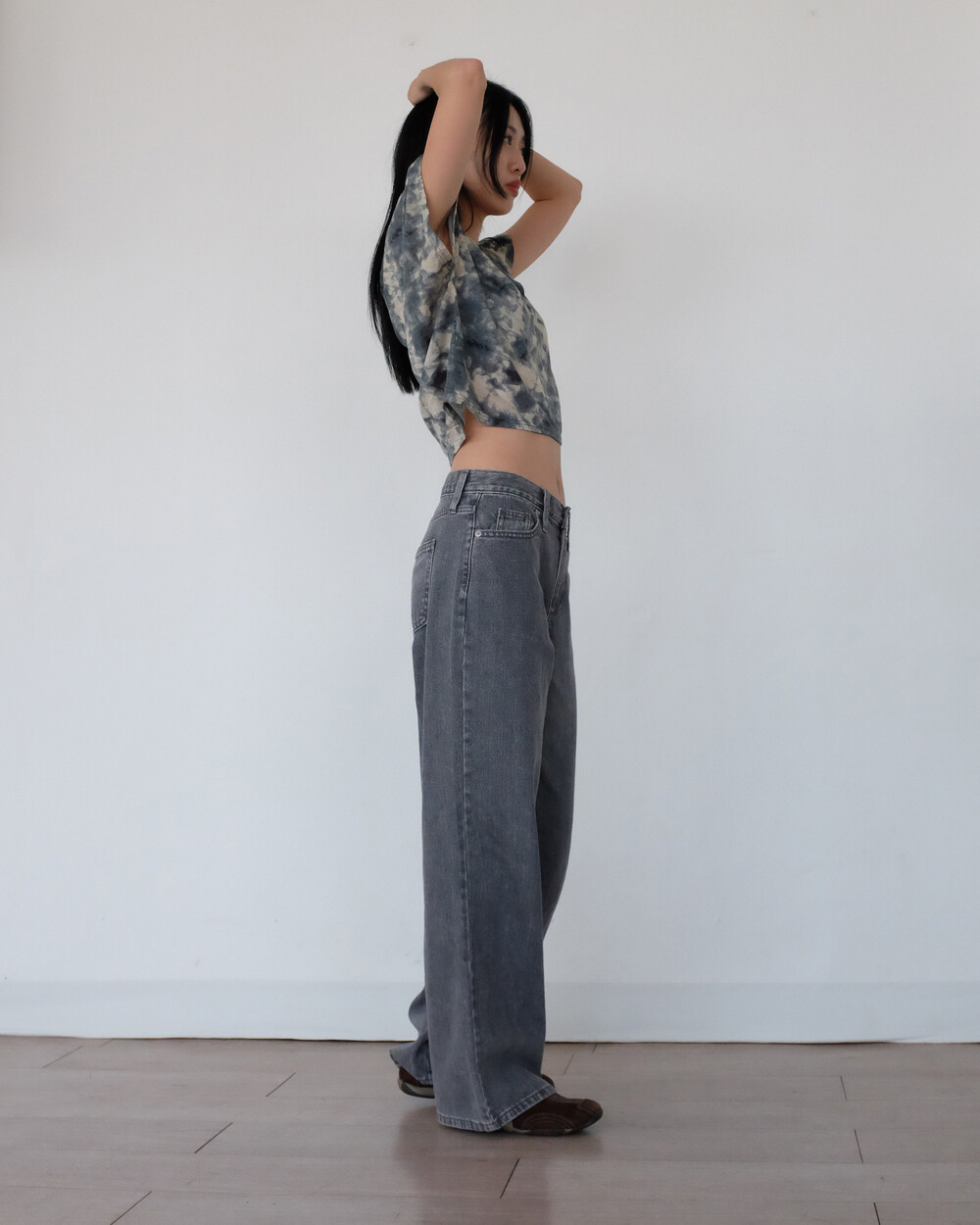 데일리 활용도 높은 진회색 와이드 데님 팬츠