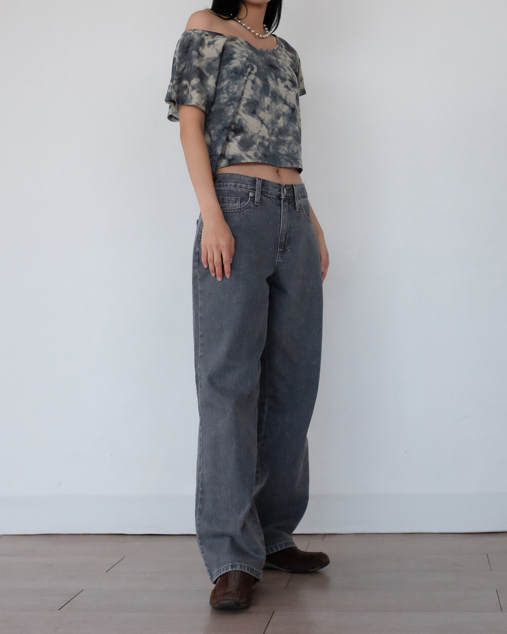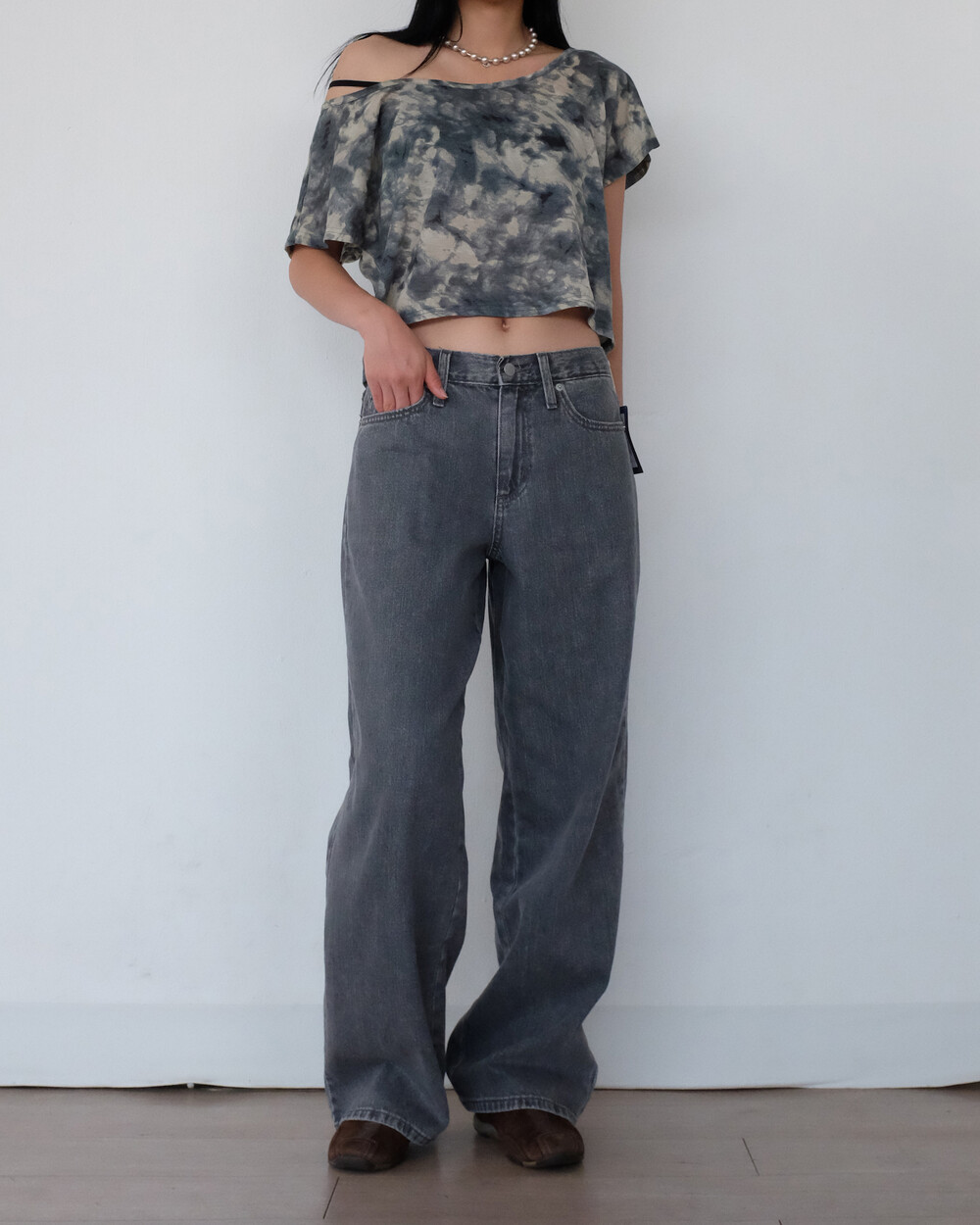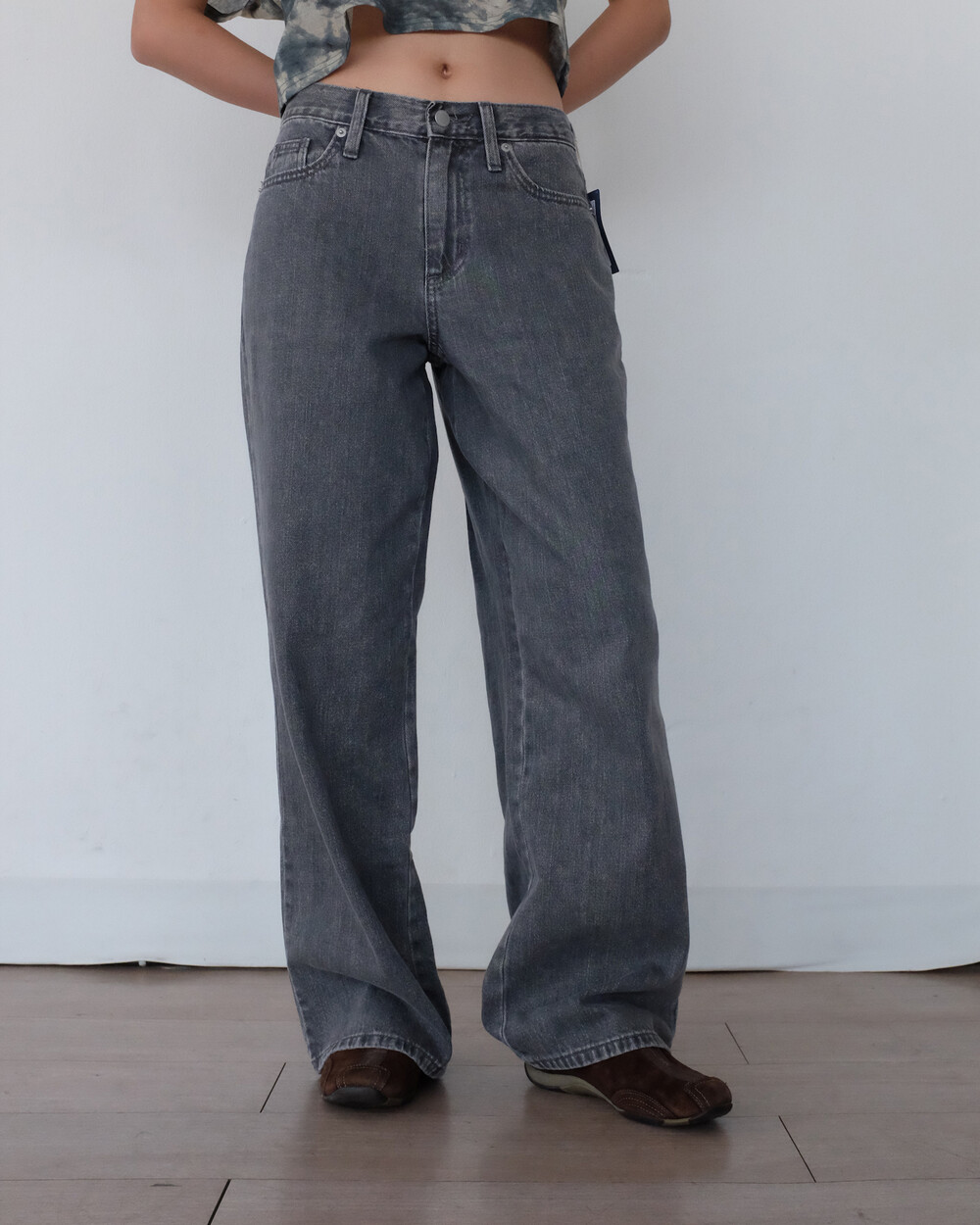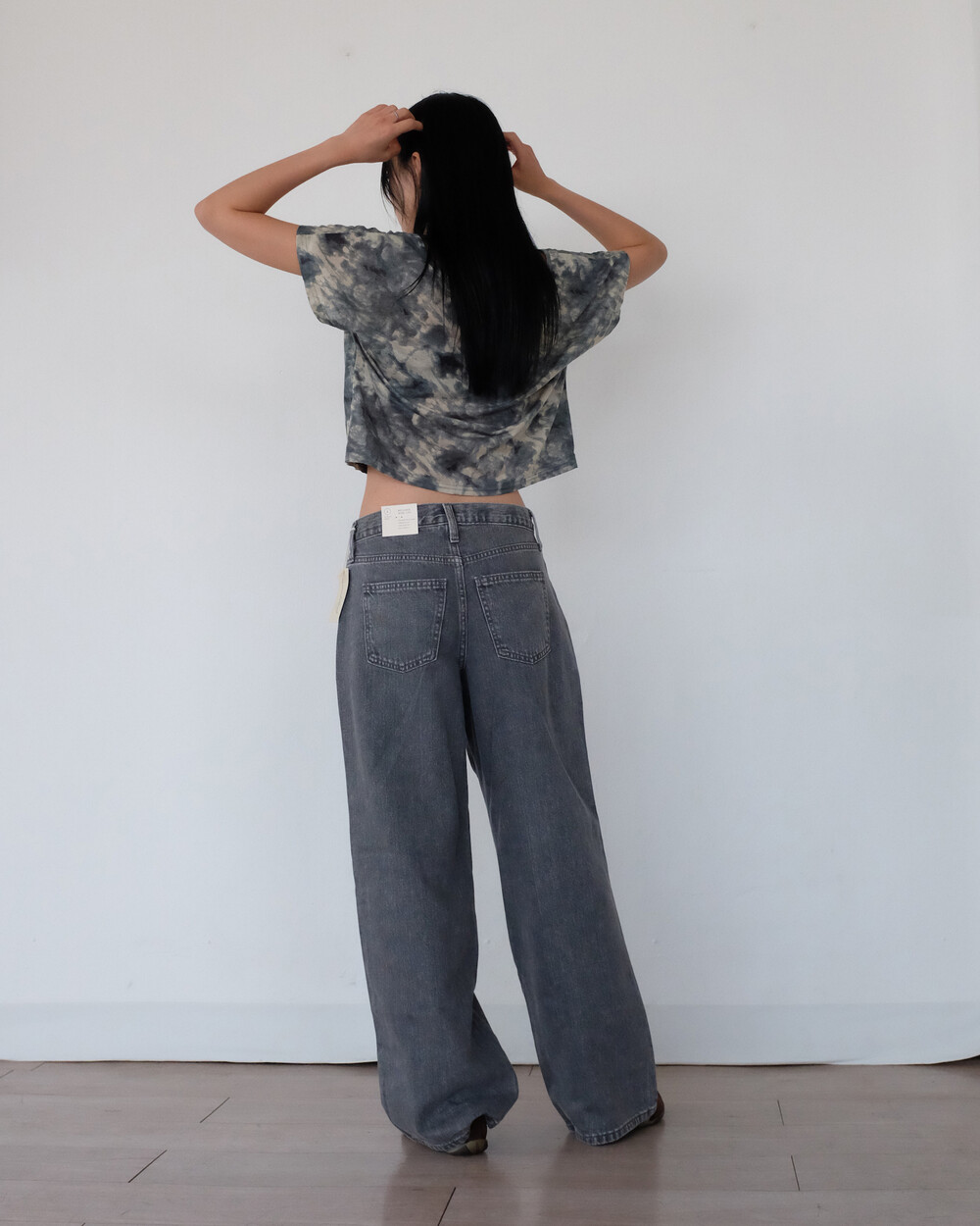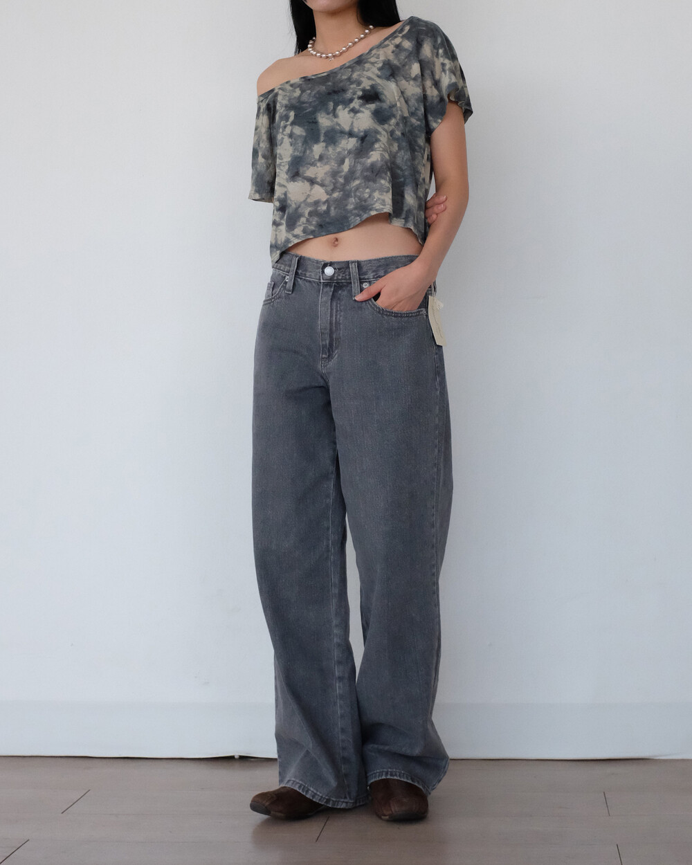 데일리 활용도 높은 진회색 와이드 데님 팬츠