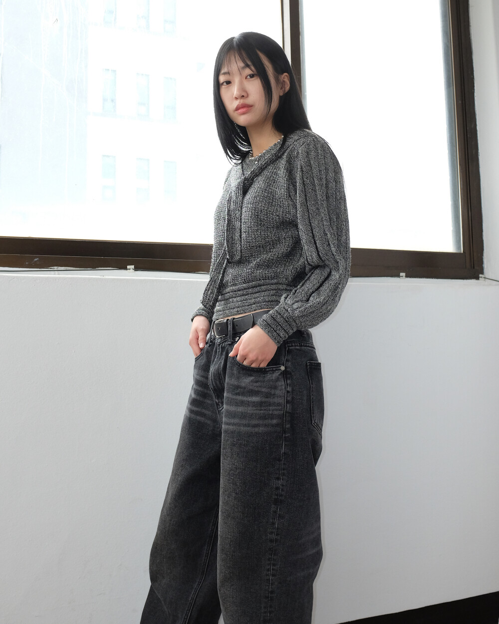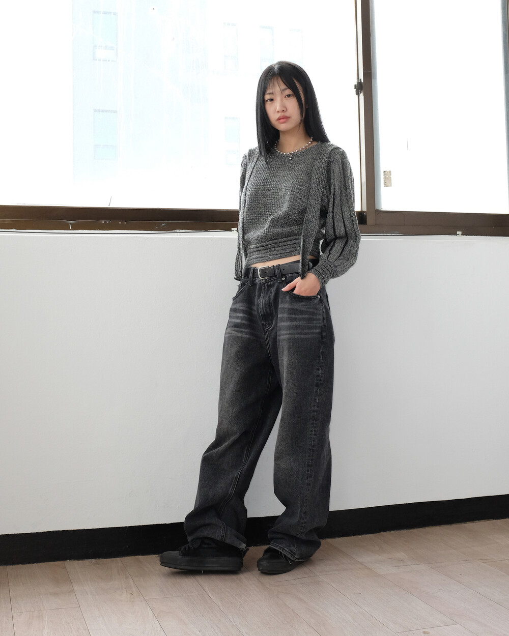 하의의 경우 모델 사이즈에 맞게 허리 조절이 있을 수 있으므로