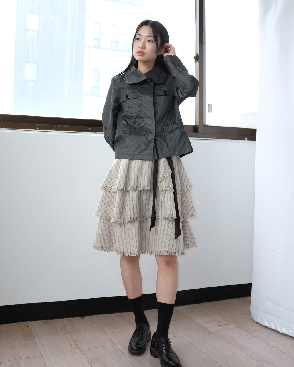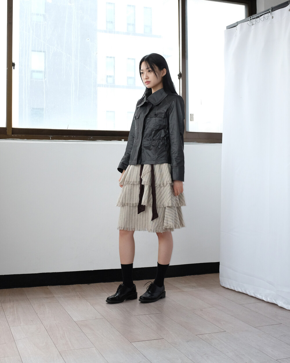 하의의 경우 모델 사이즈에 맞게 허리 조절이 있을 수 있으므로