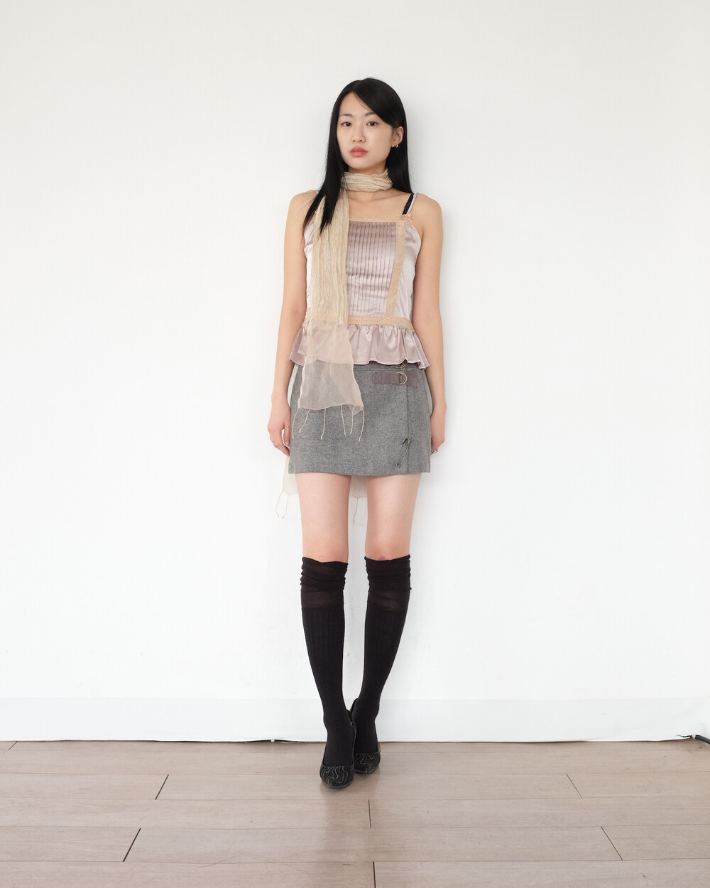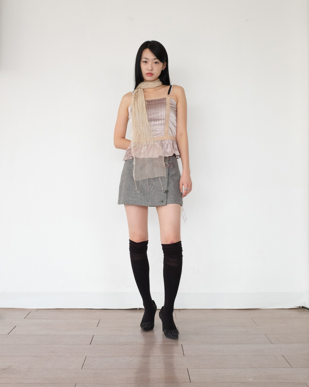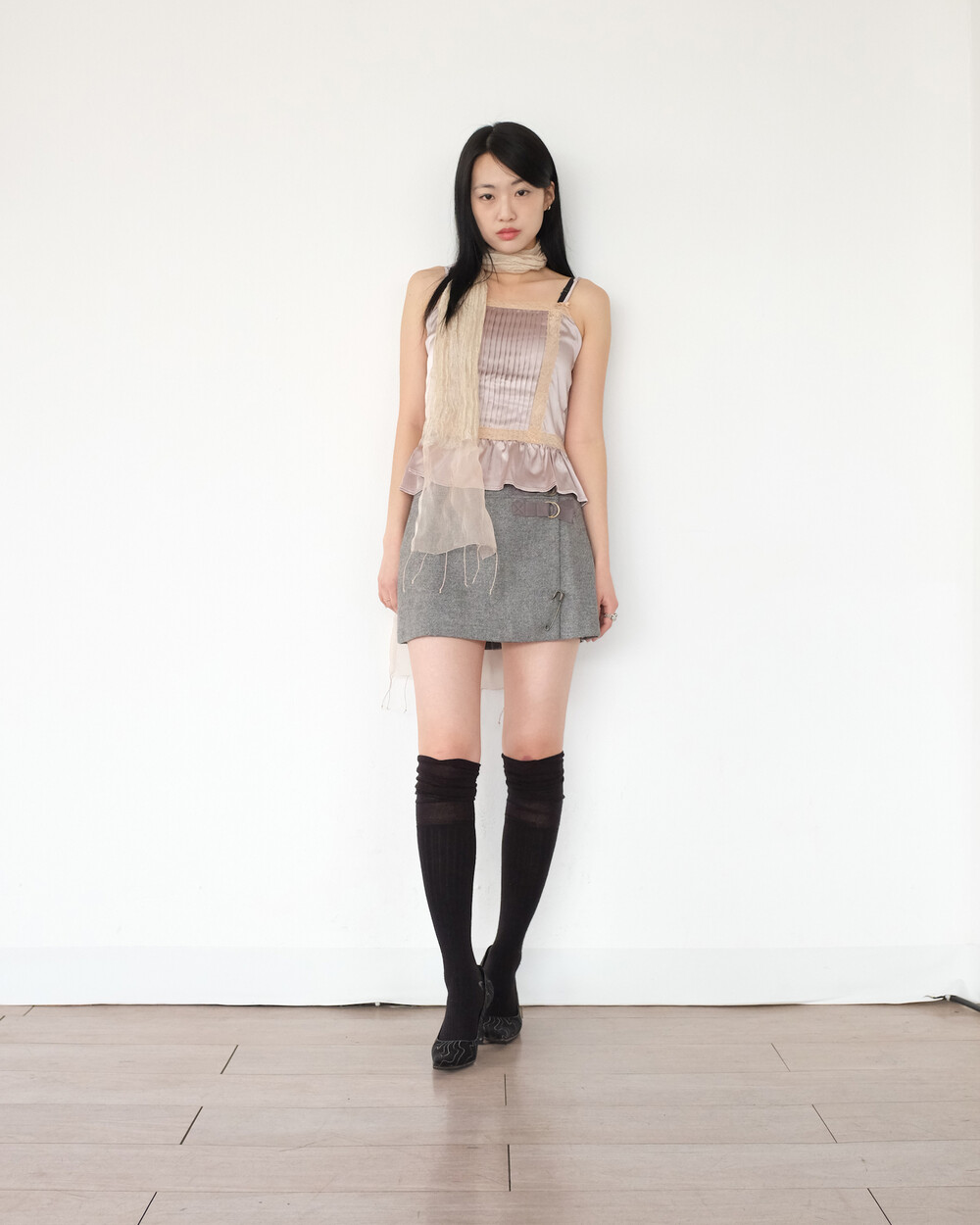 하의의 경우 모델 사이즈에 맞게 허리 조절이 있을 수 있으므로