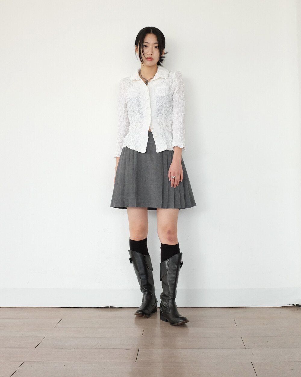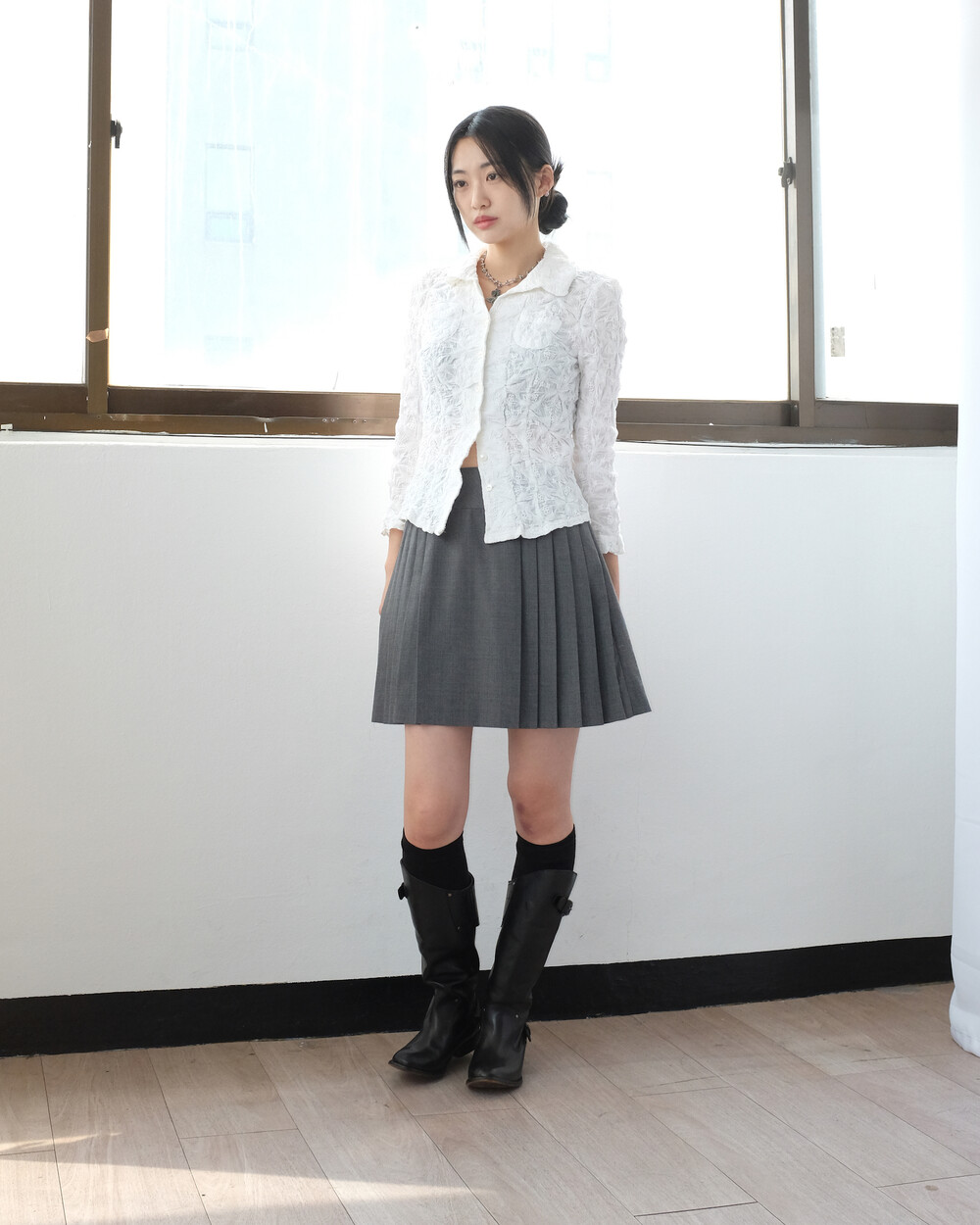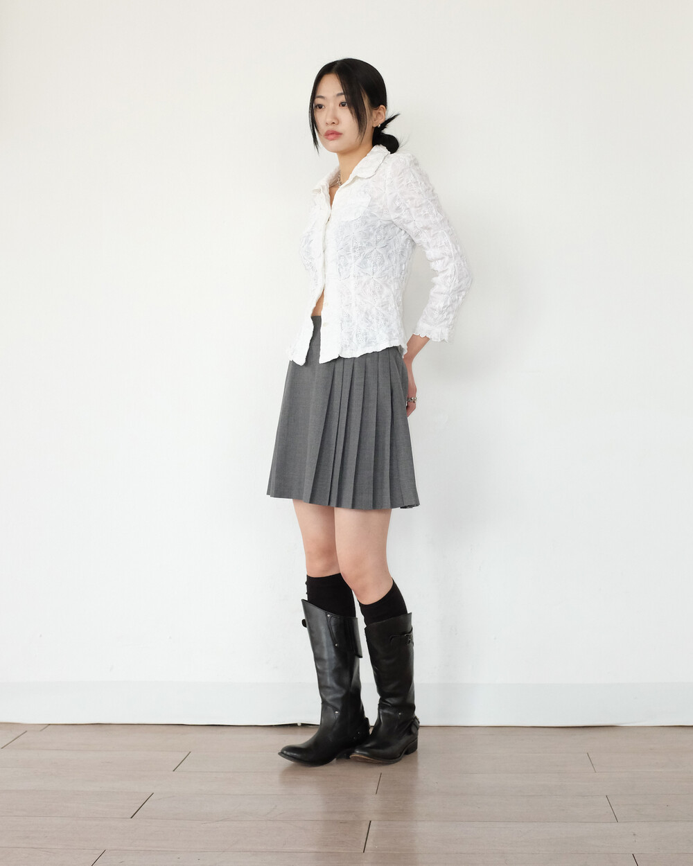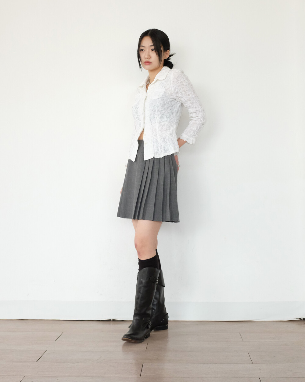 하의의 경우 모델 사이즈에 맞게 허리 조절이 있을 수 있으므로