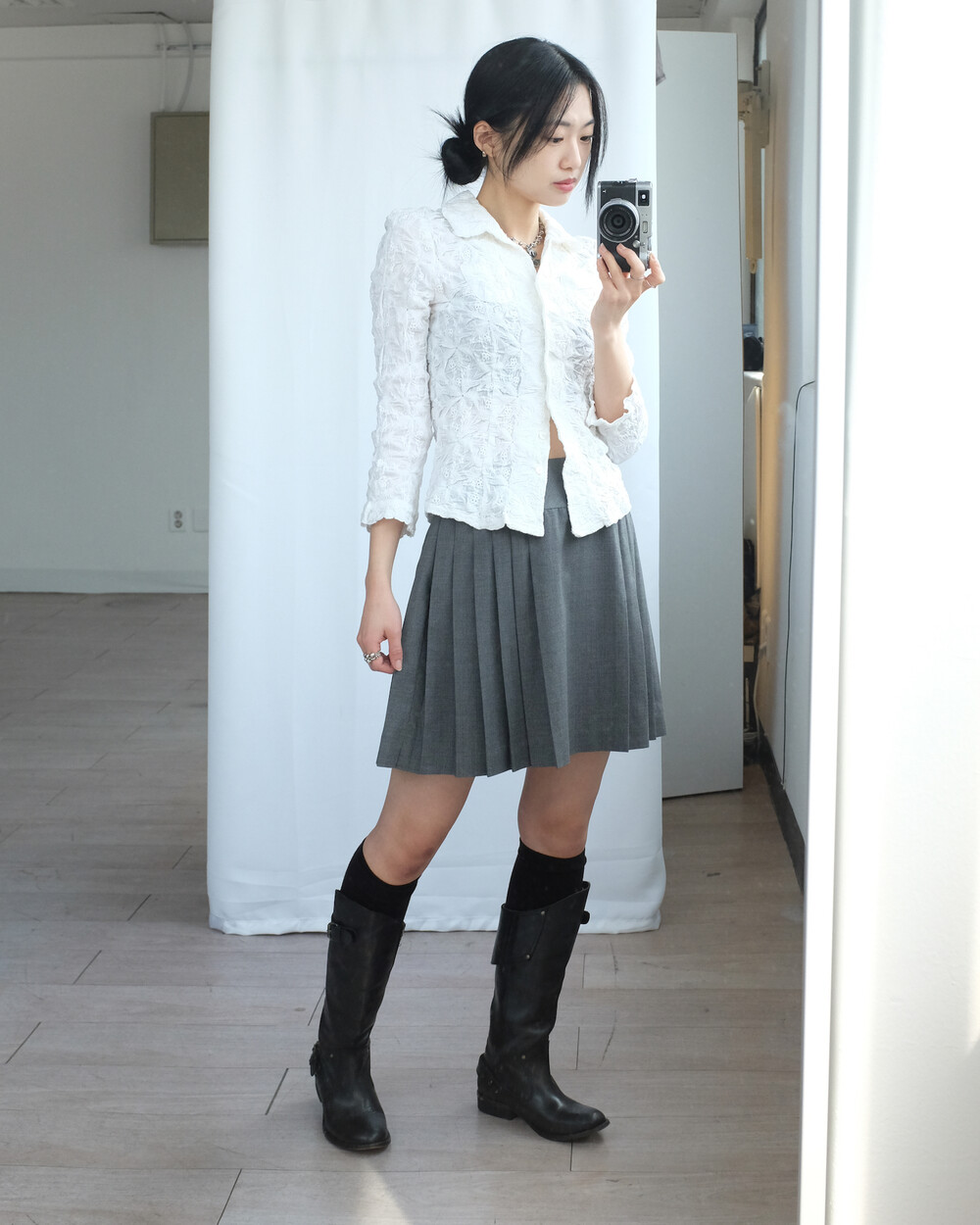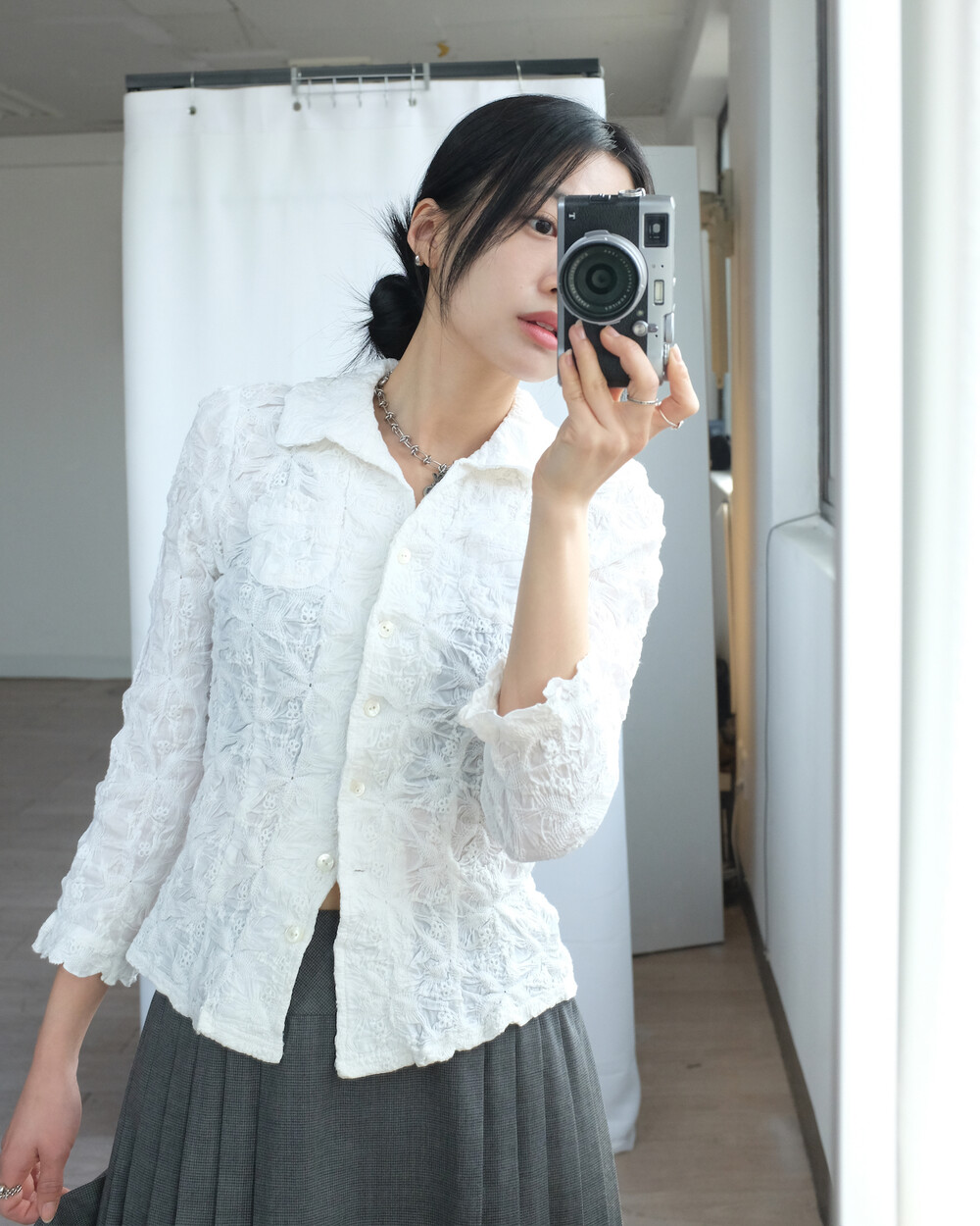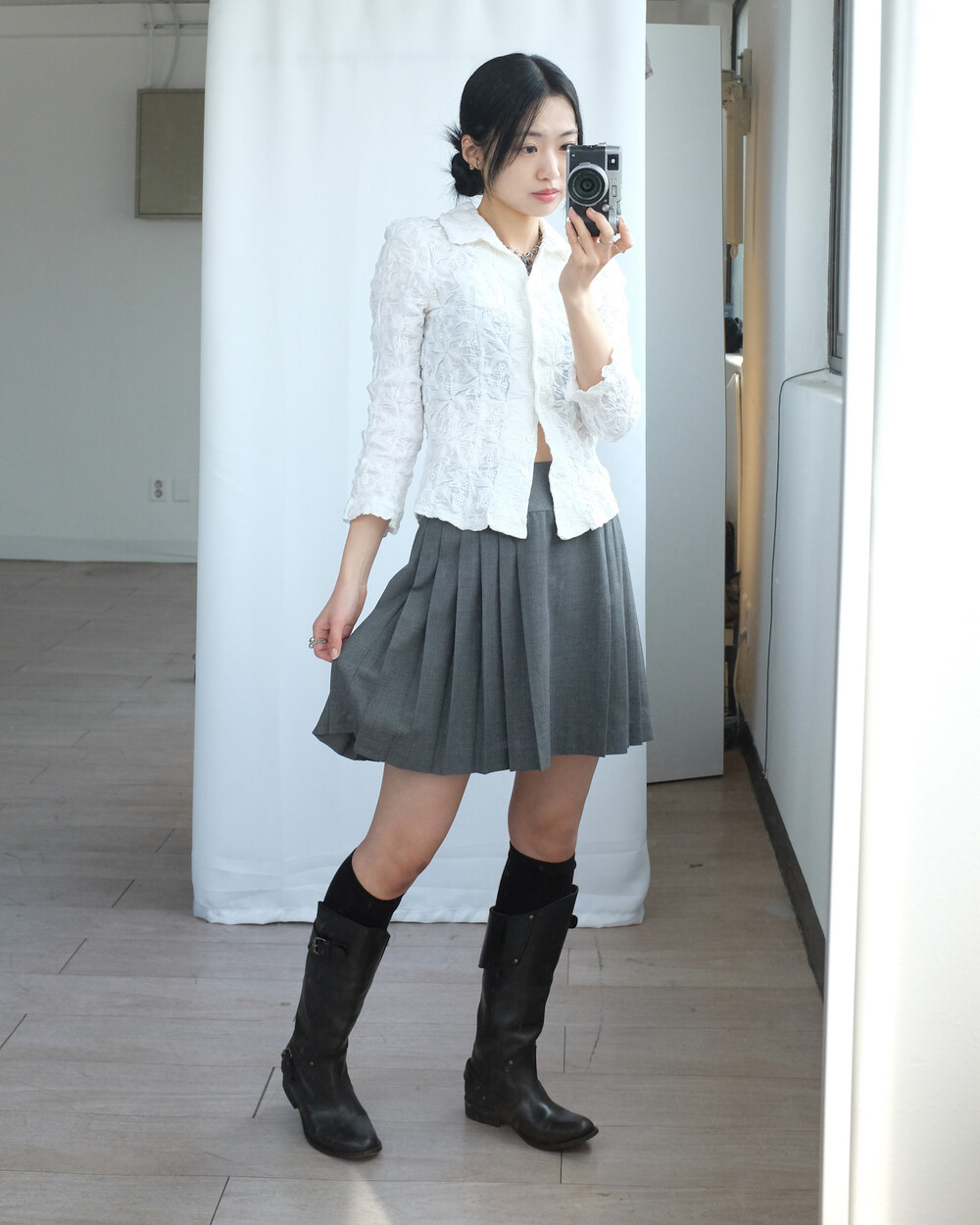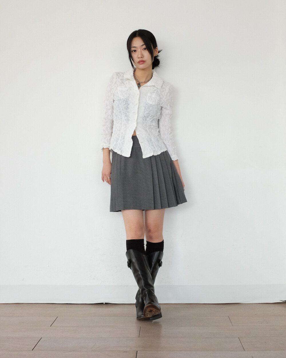 하의의 경우 모델 사이즈에 맞게 허리 조절이 있을 수 있으므로