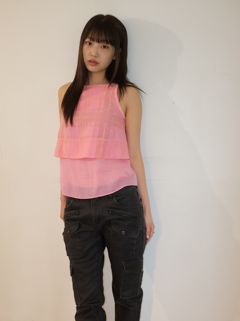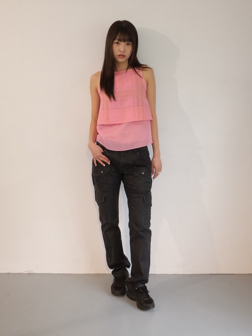 하의의 경우 모델 사이즈에 맞게 허리 조절이 있을 수 있으므로