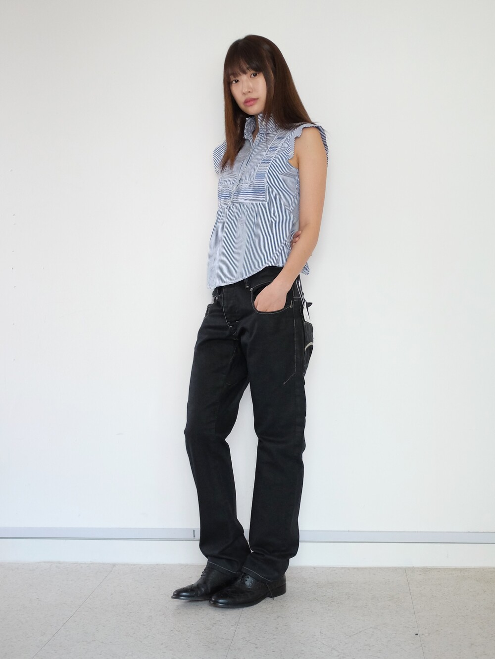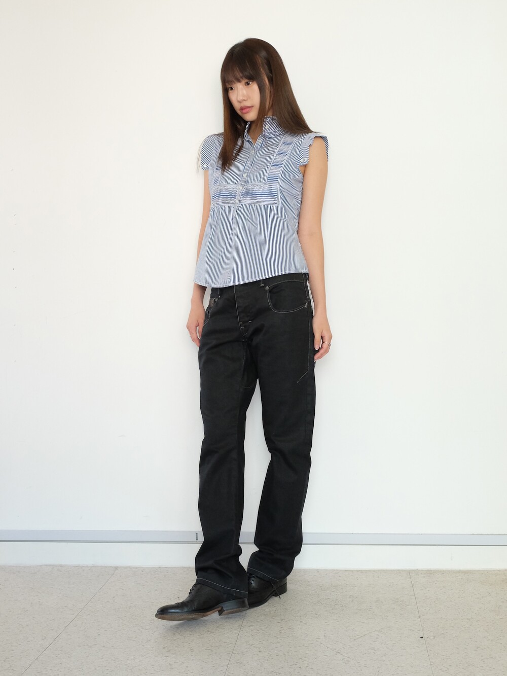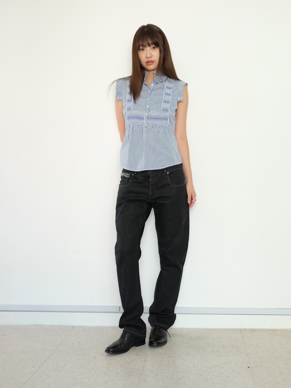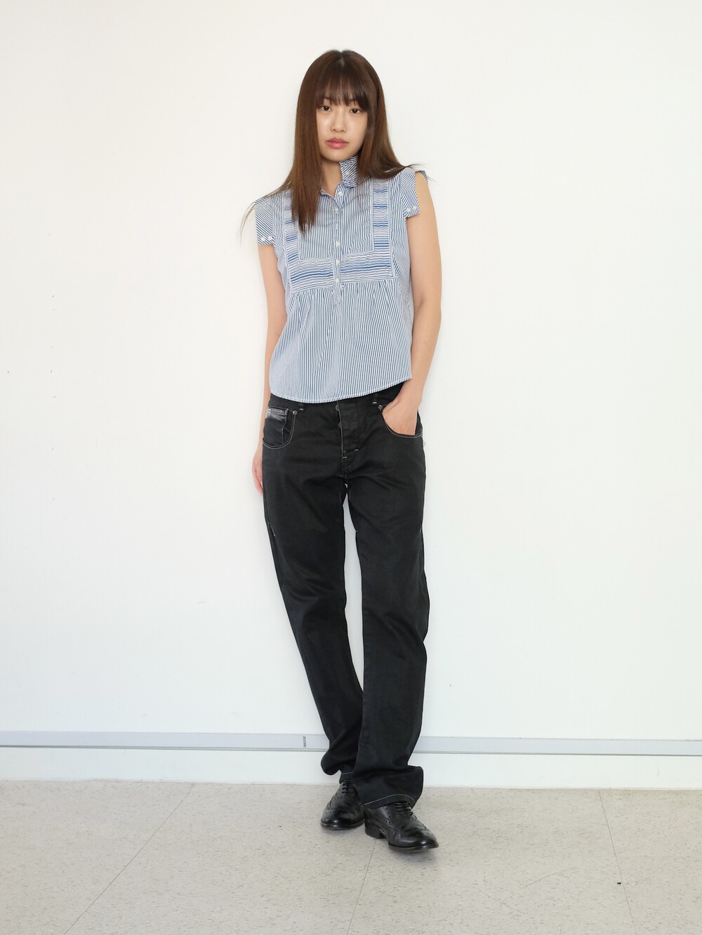 하의의 경우 모델 사이즈에 맞게 허리 조절이 있을 수 있으므로