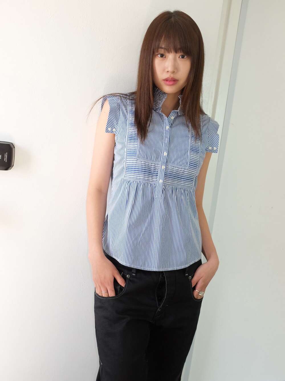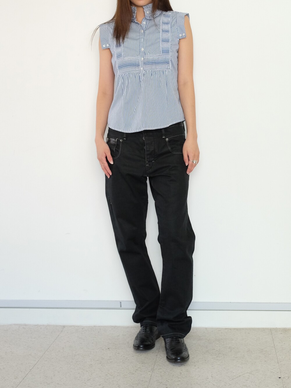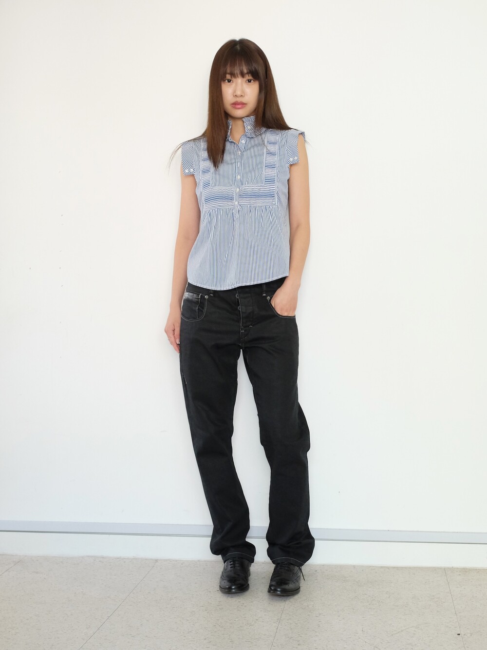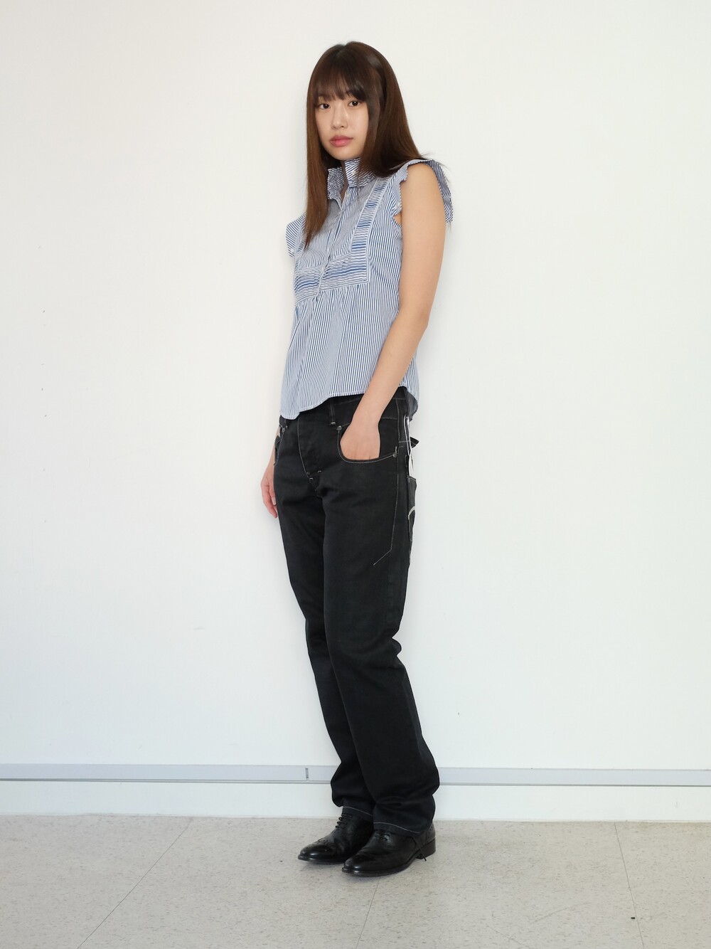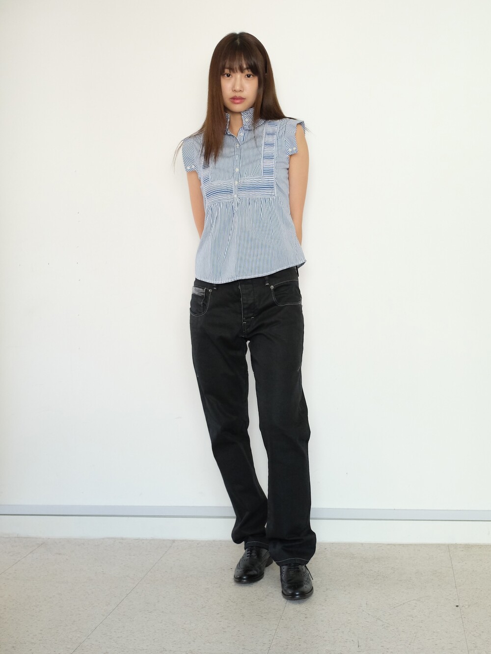 하의의 경우 모델 사이즈에 맞게 허리 조절이 있을 수 있으므로