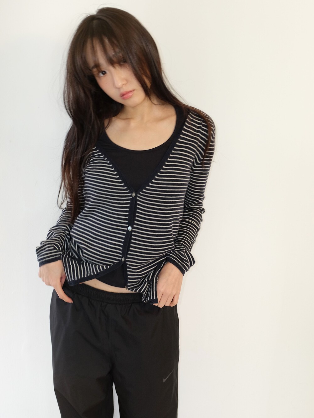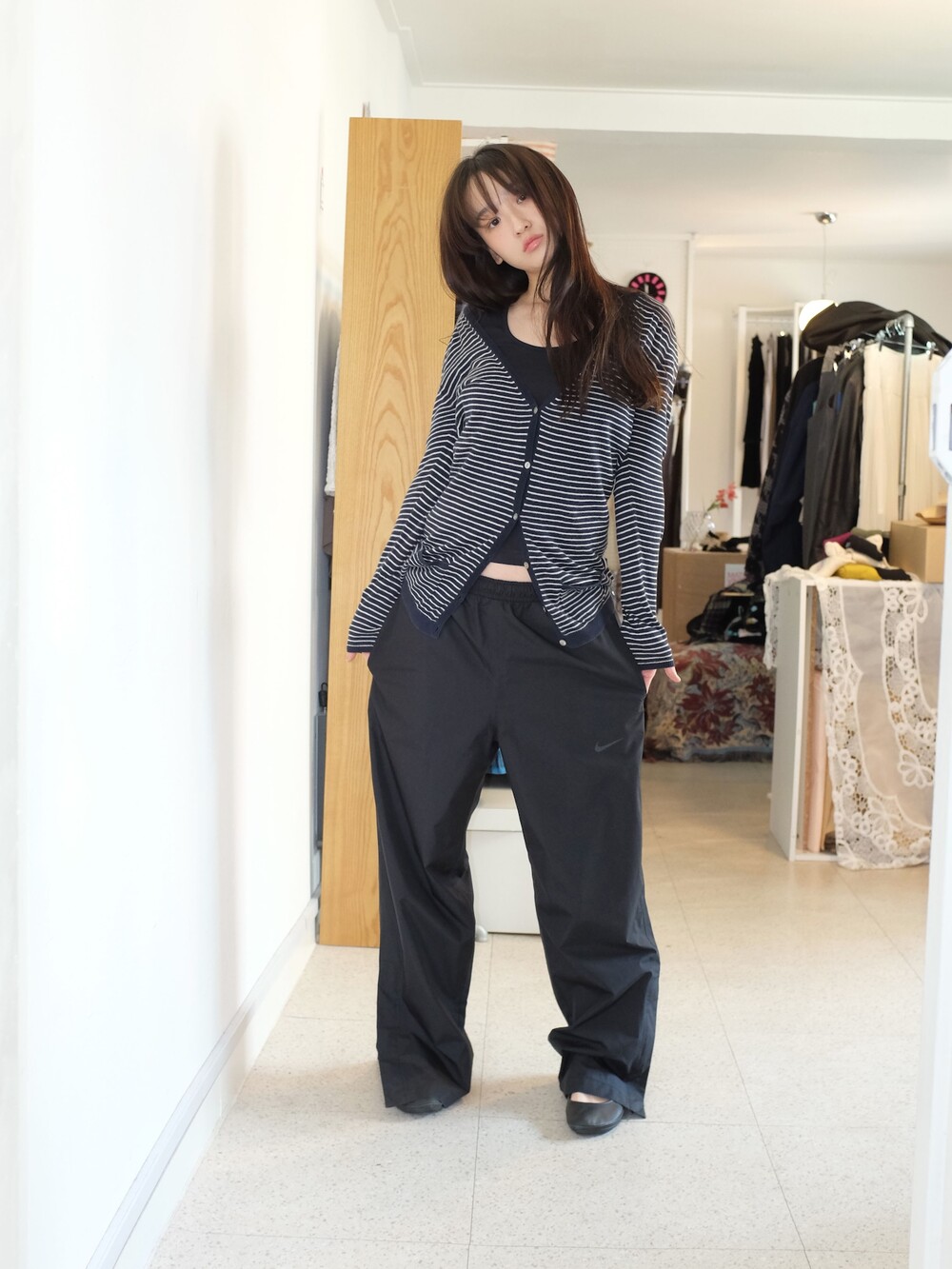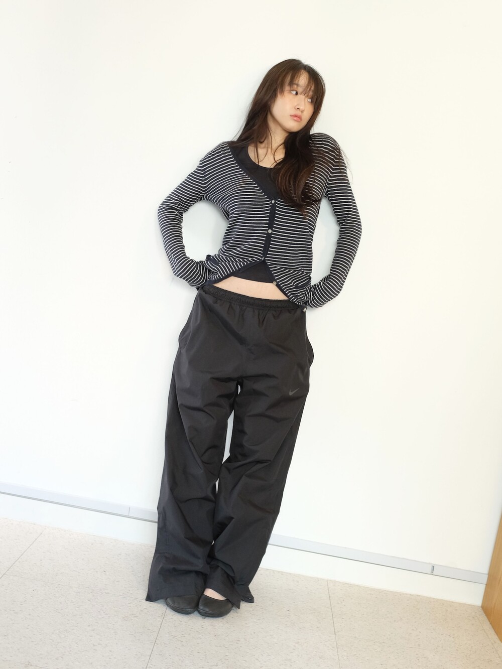 하의의 경우 모델 사이즈에 맞게 허리 조절이 있을 수 있으므로