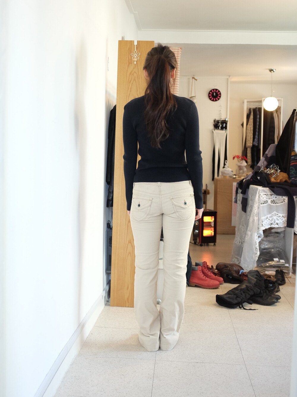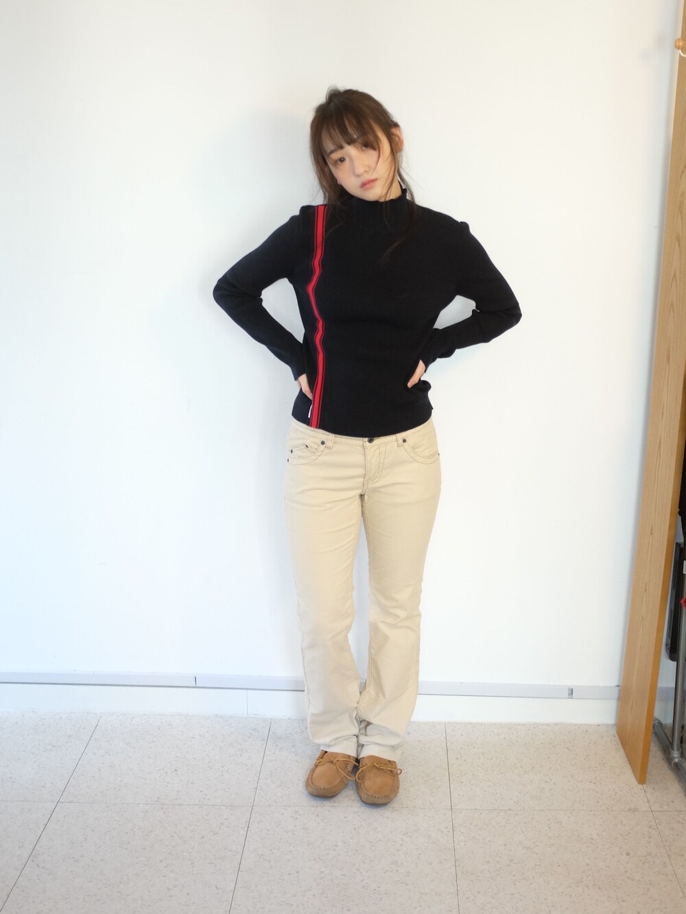 하의의 경우 모델 사이즈에 맞게 허리 조절이 있을 수 있으므로