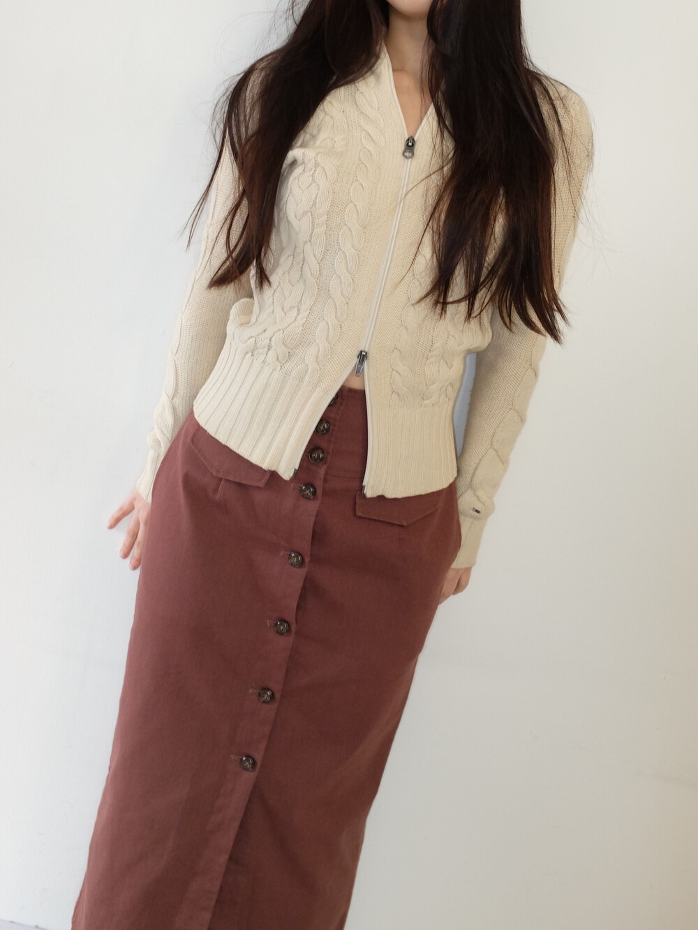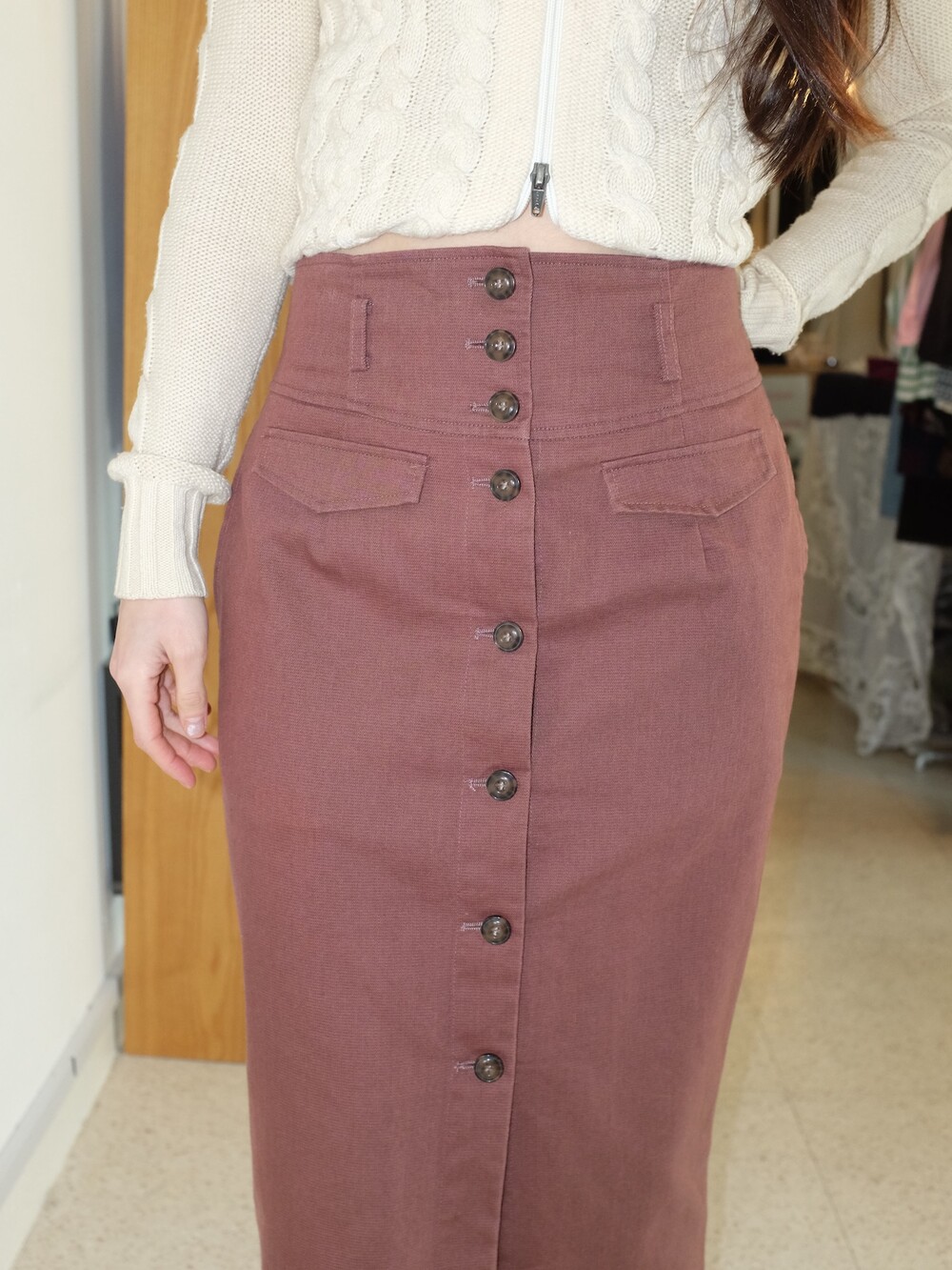 MOUSSY button long skirt
