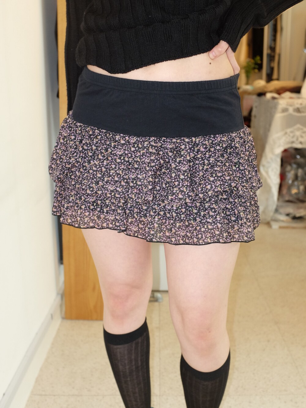 Vintage flower pattern mini skirt