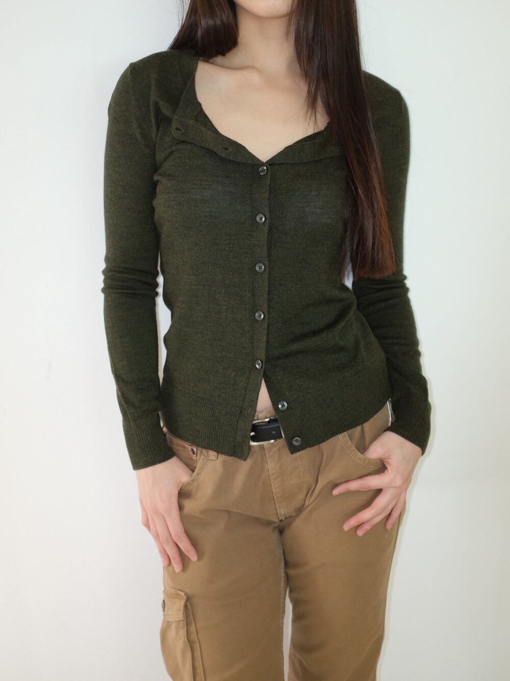 - 차분한 컬러감이 매력적인 슬림핏 울 소재 가디건
