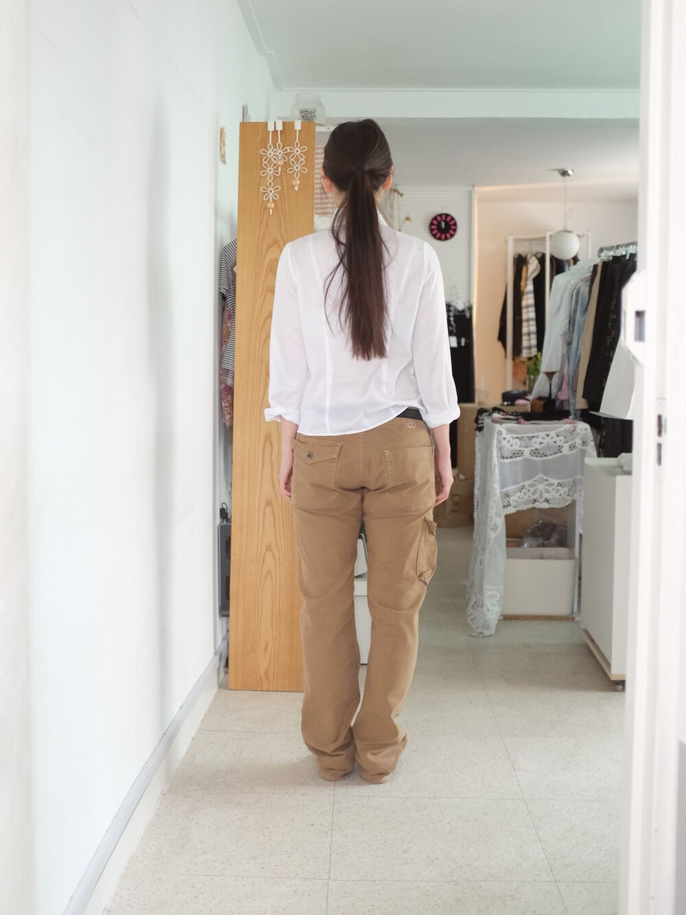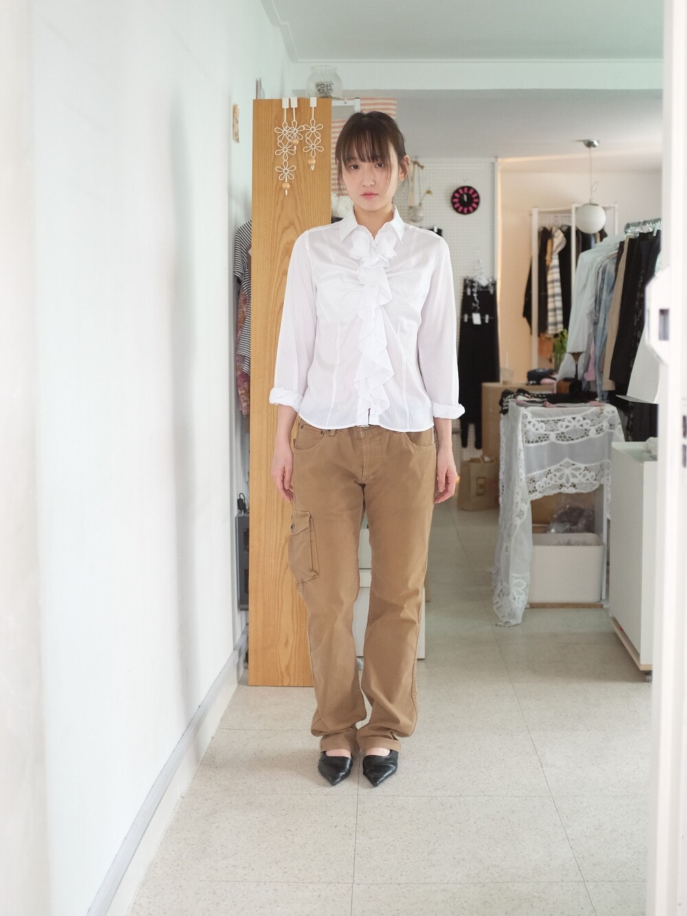 하의의 경우 모델 사이즈에 맞게 허리 조절이 있을 수 있으므로