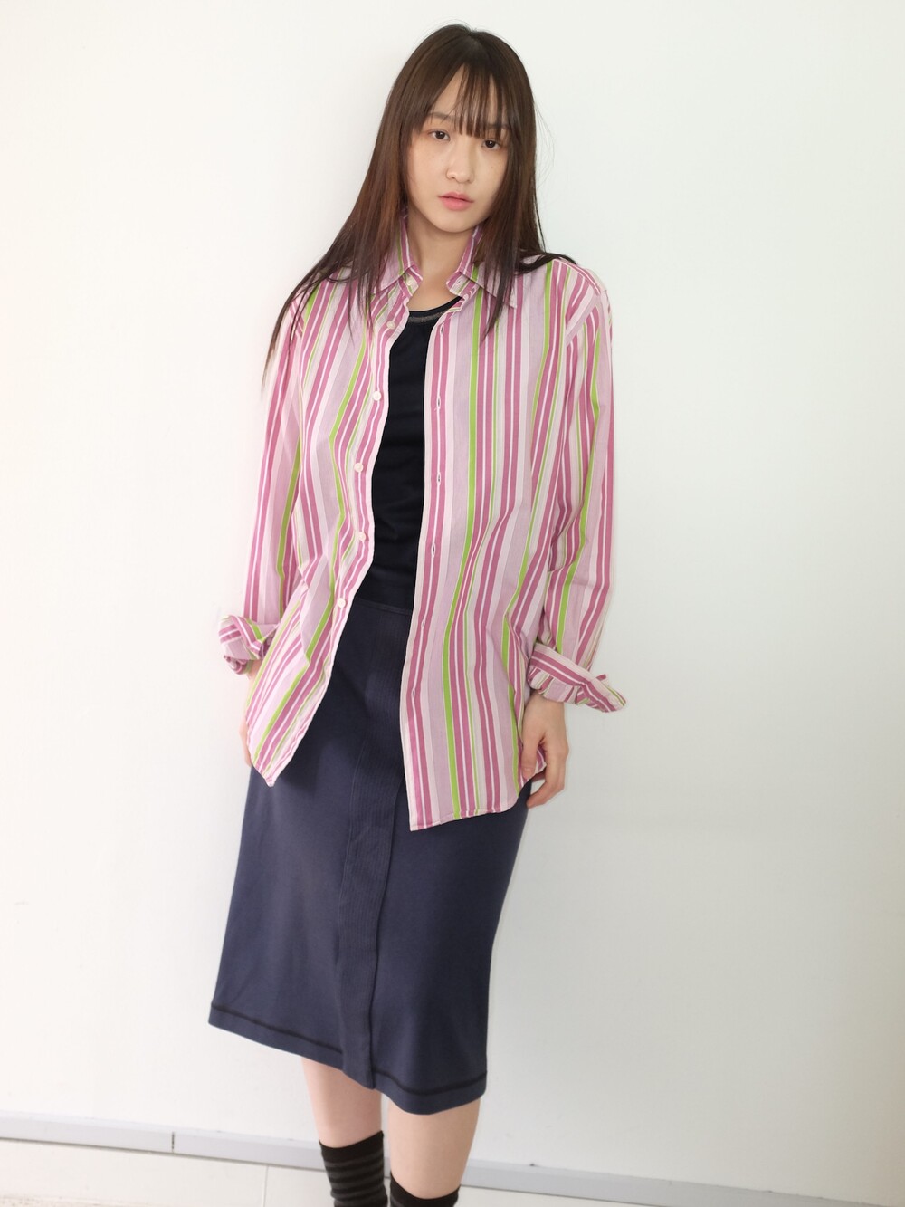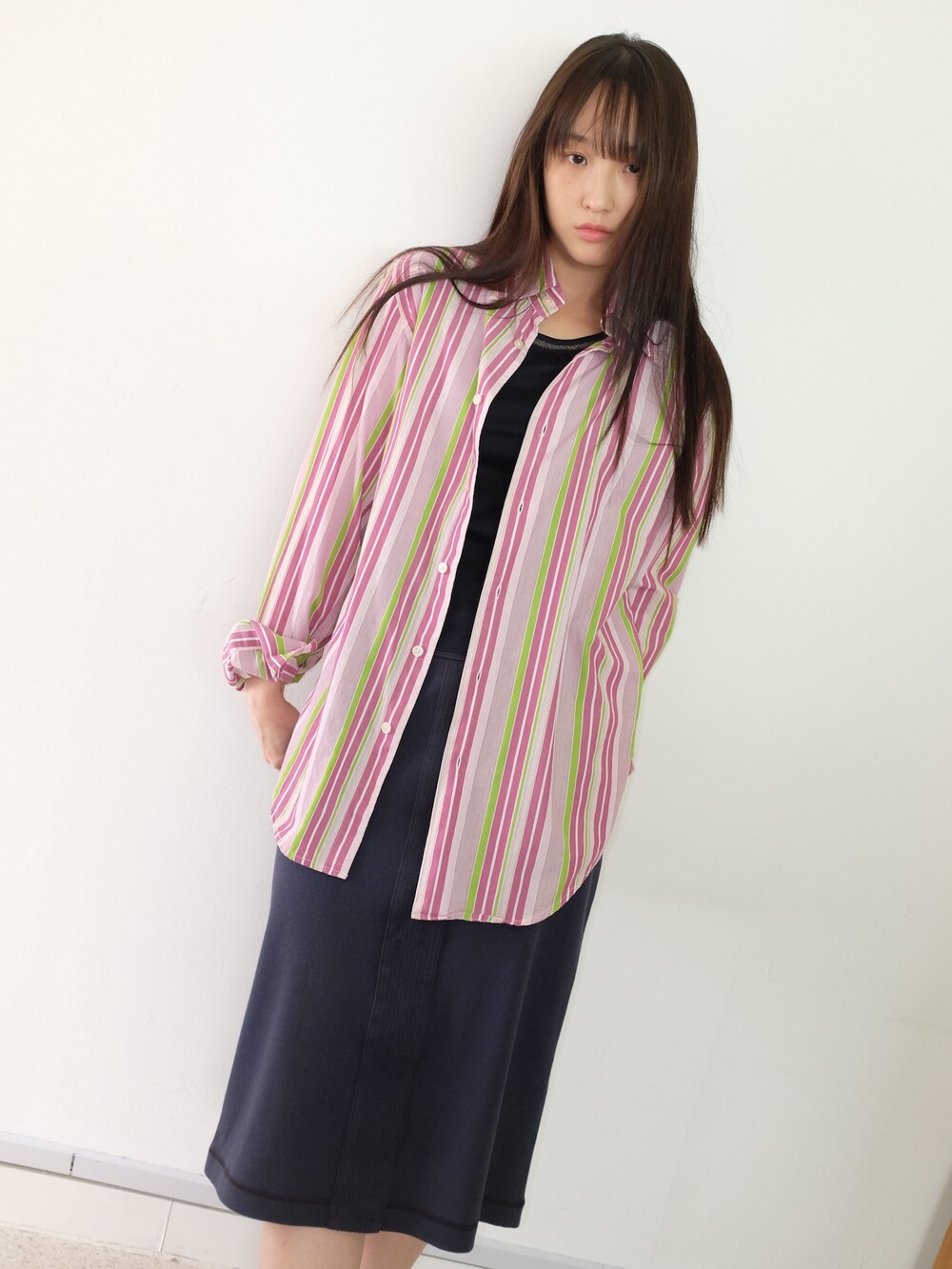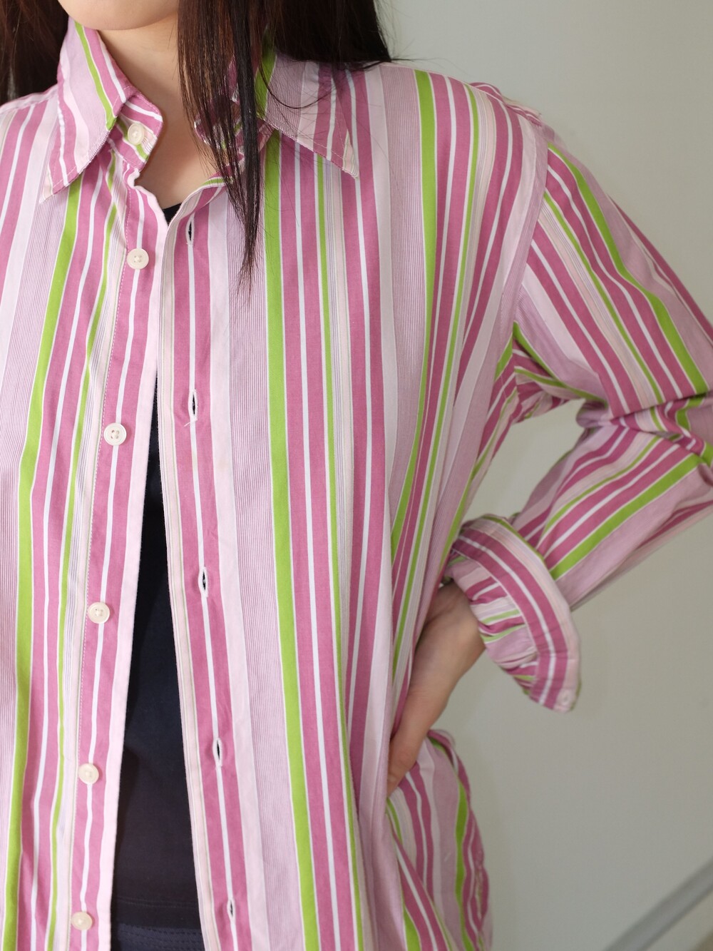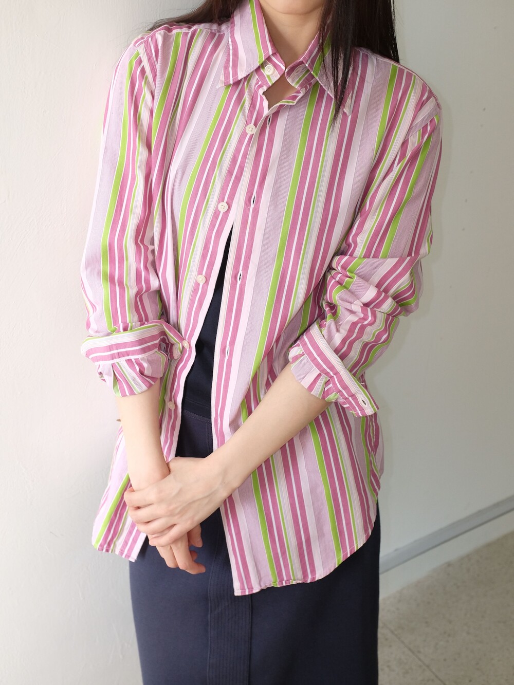 - 가볍게 걸치기 좋은 포인트 되는 컬러감의 스트라이프 셔츠
