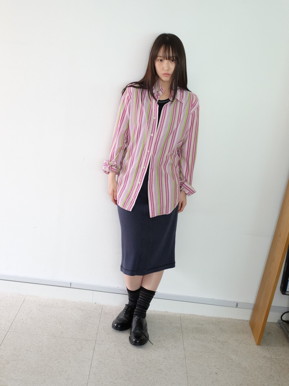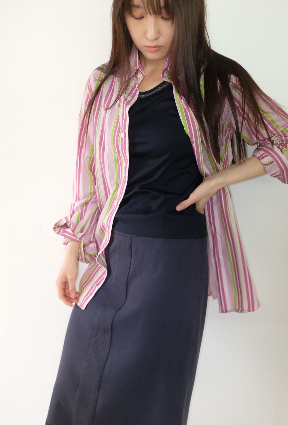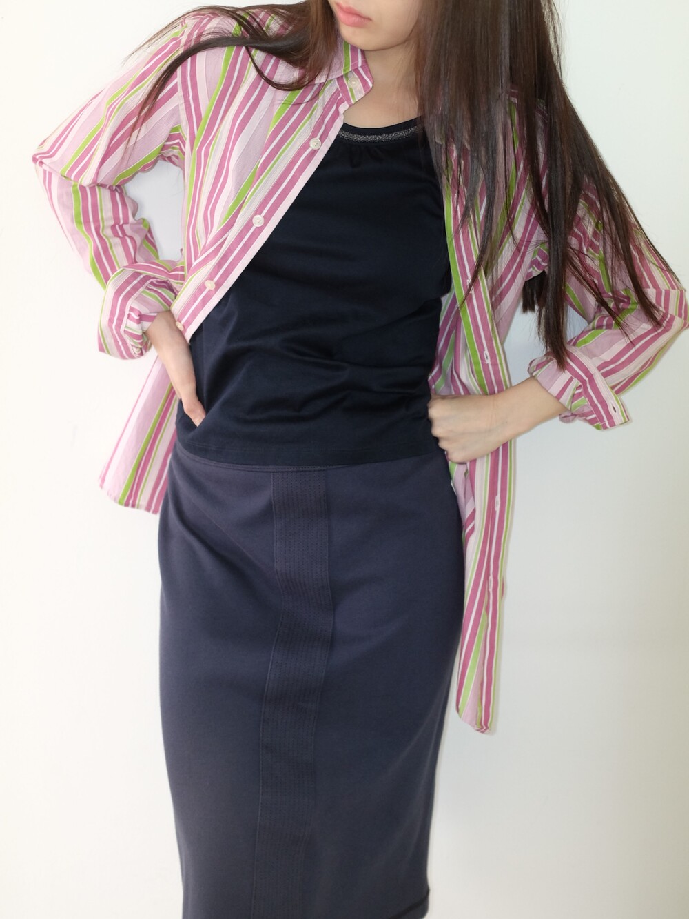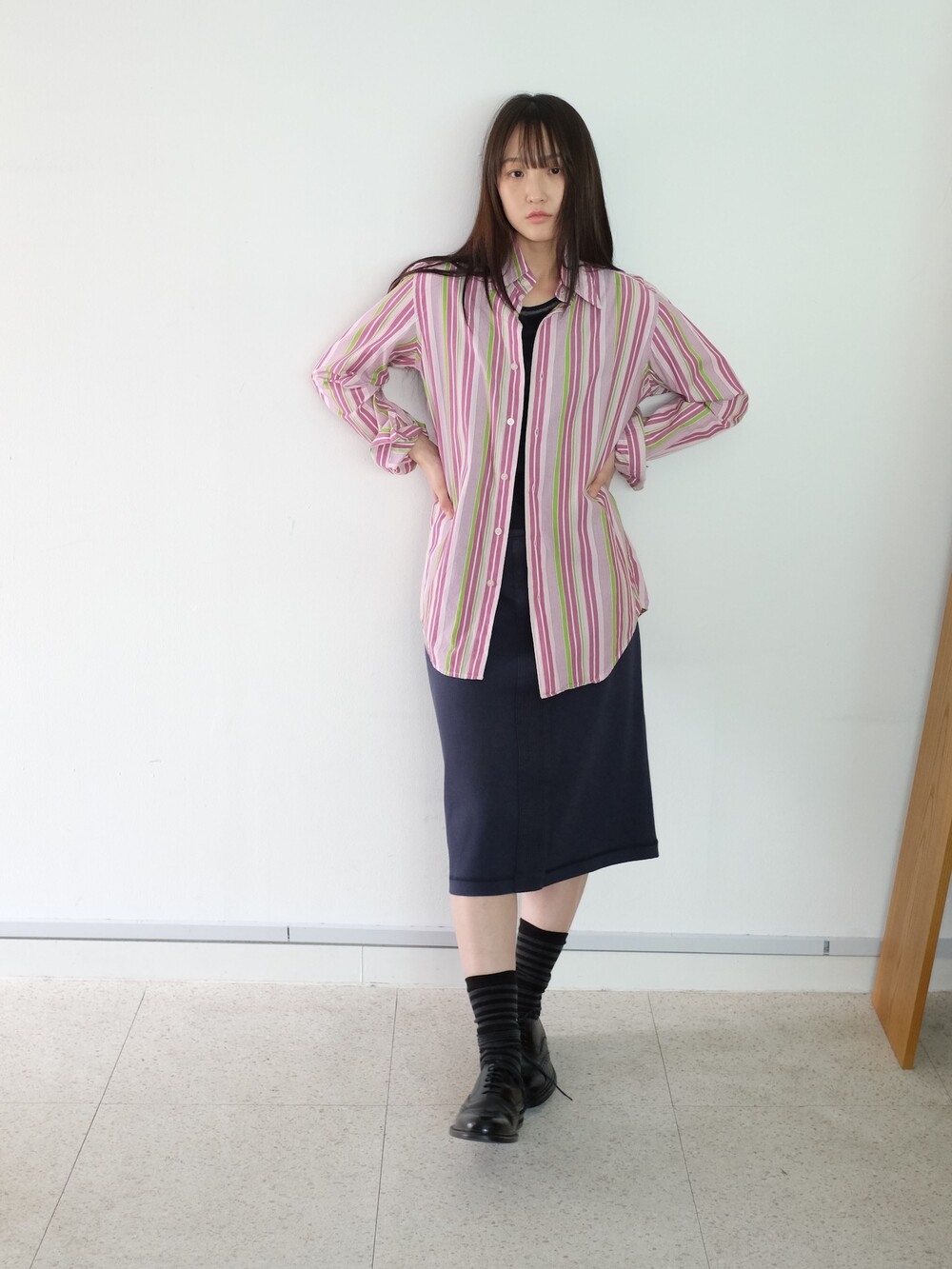 - 가볍게 걸치기 좋은 포인트 되는 컬러감의 스트라이프 셔츠