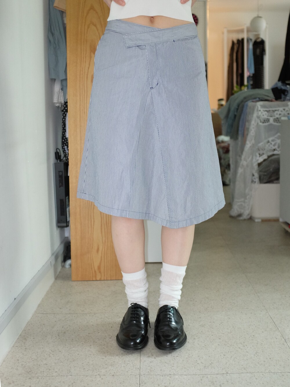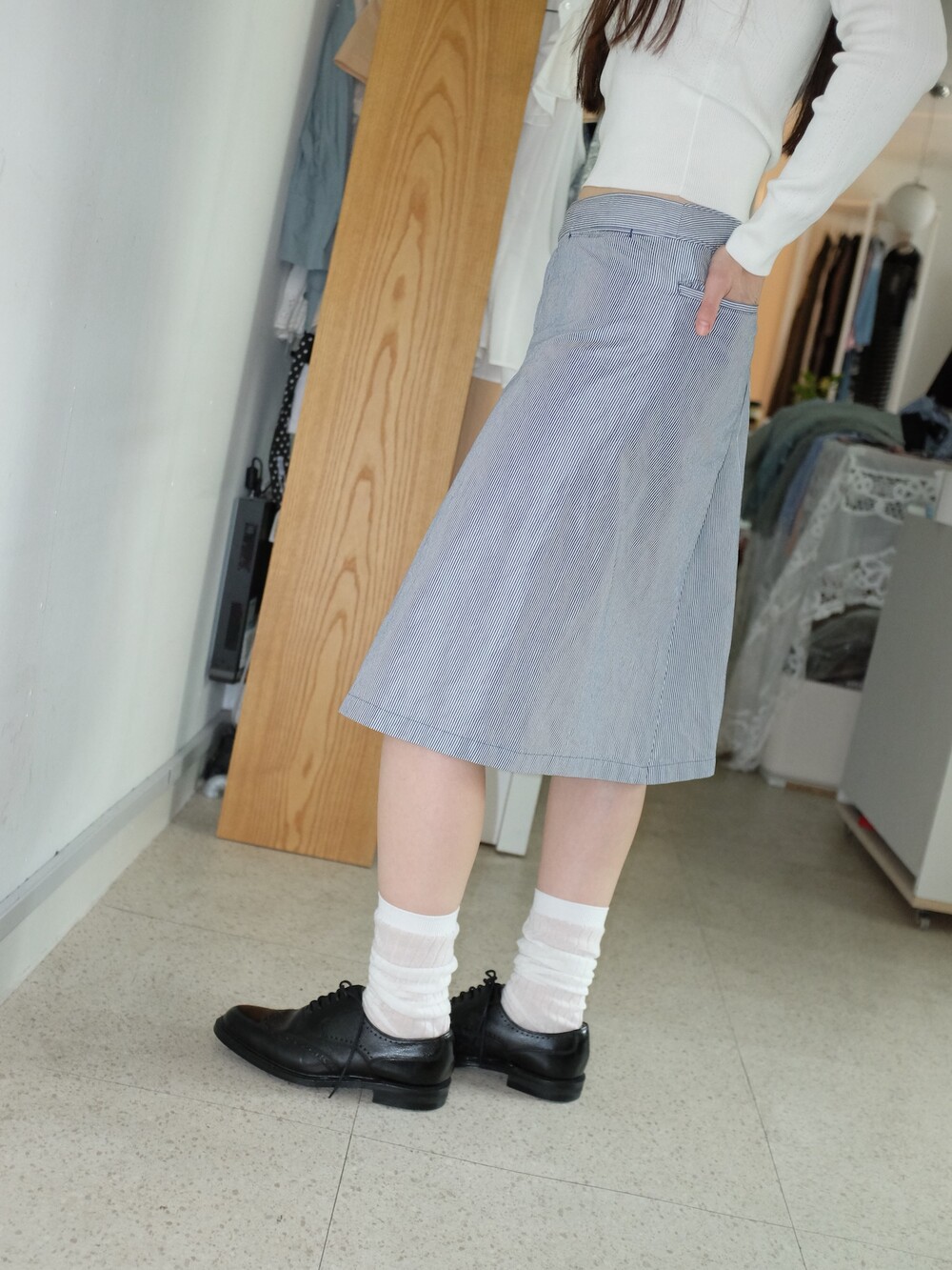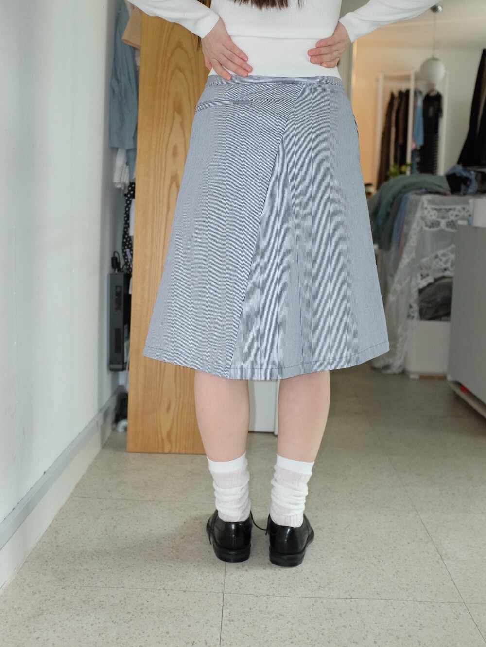 하의의 경우 모델 사이즈에 맞게 허리 조절이 있을 수 있으므로