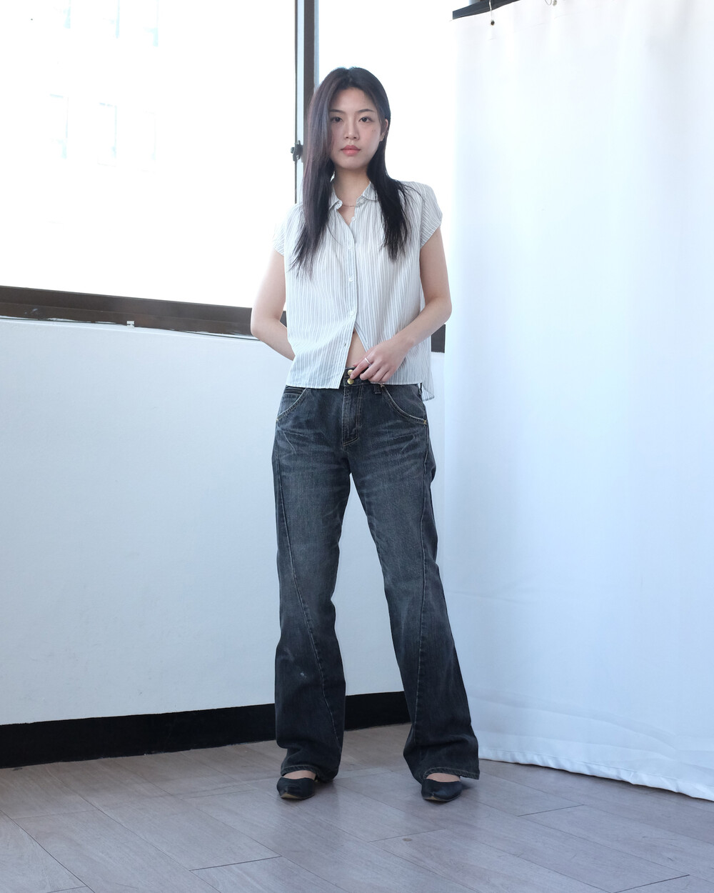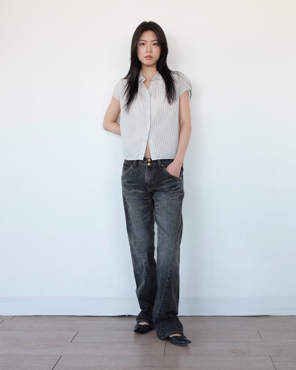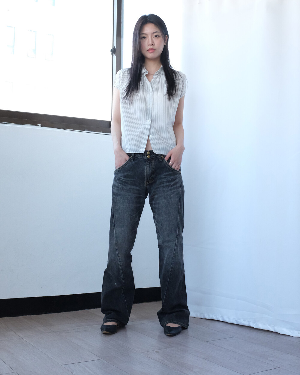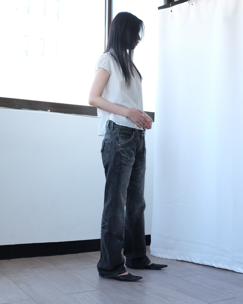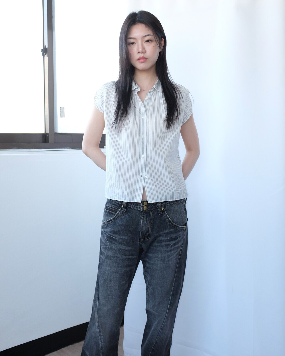 하의의 경우 모델 사이즈에 맞게 허리 조절이 있을 수 있으므로