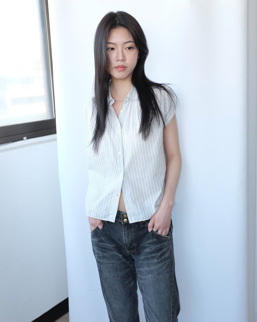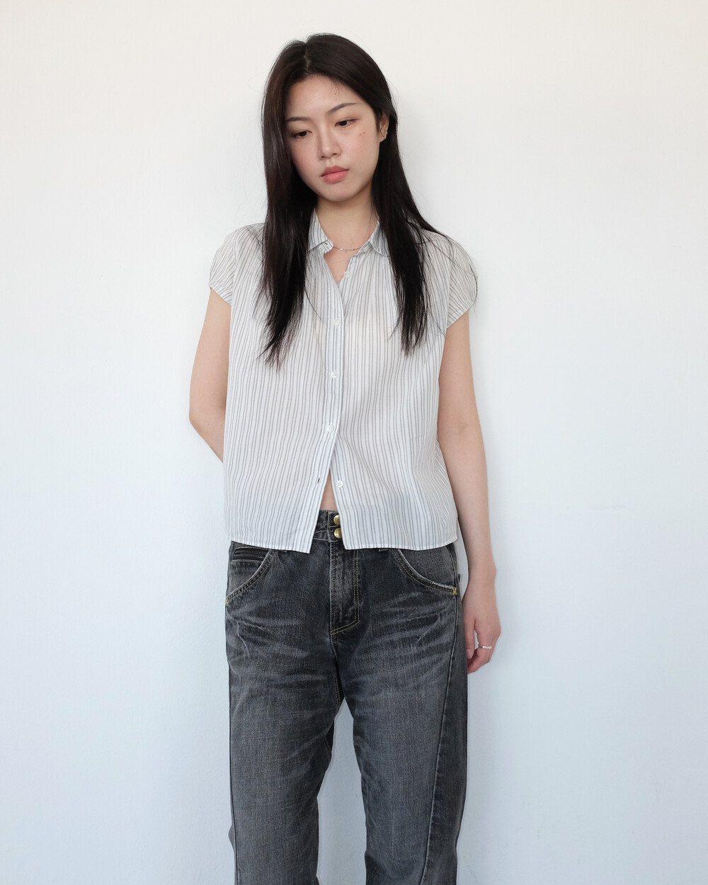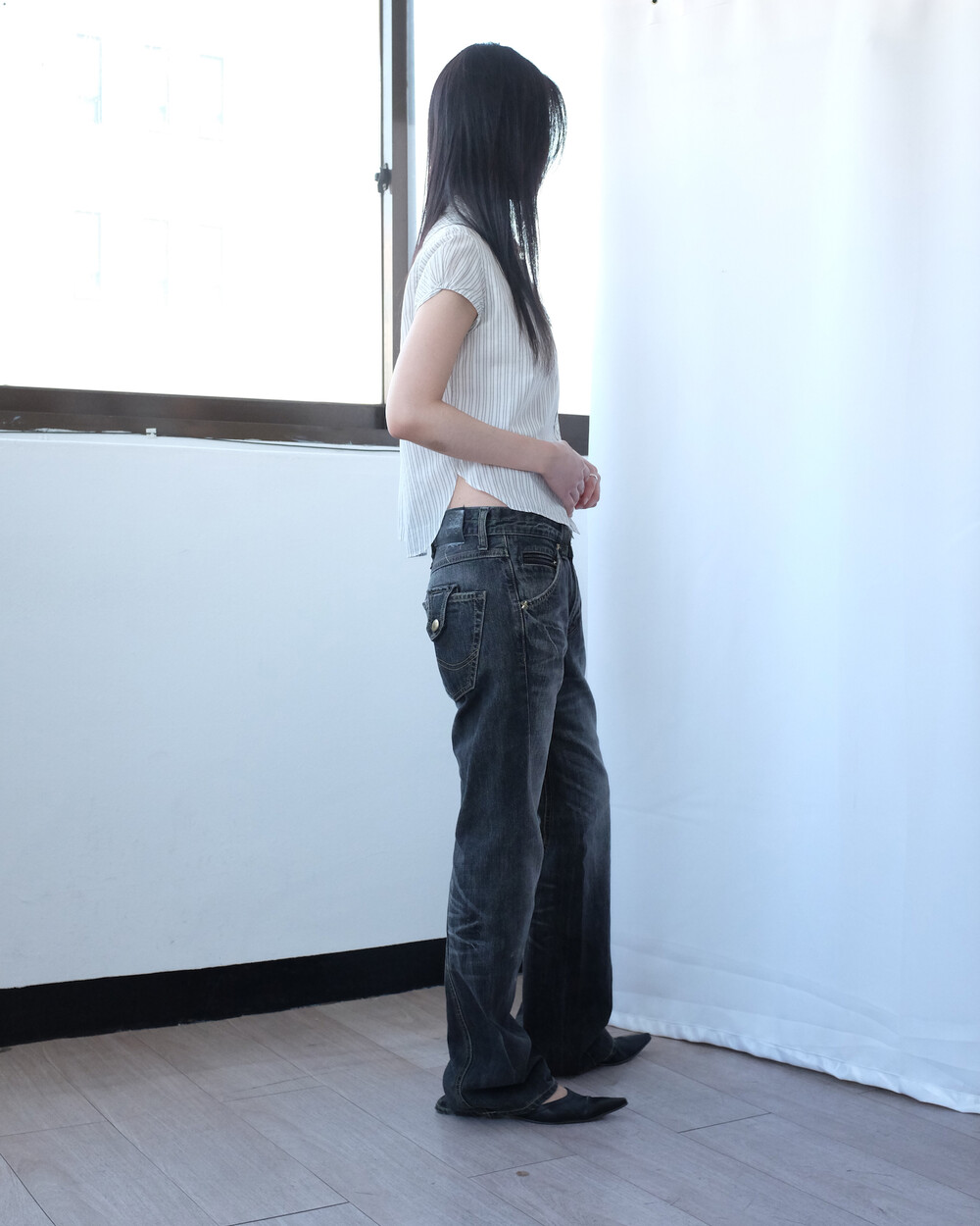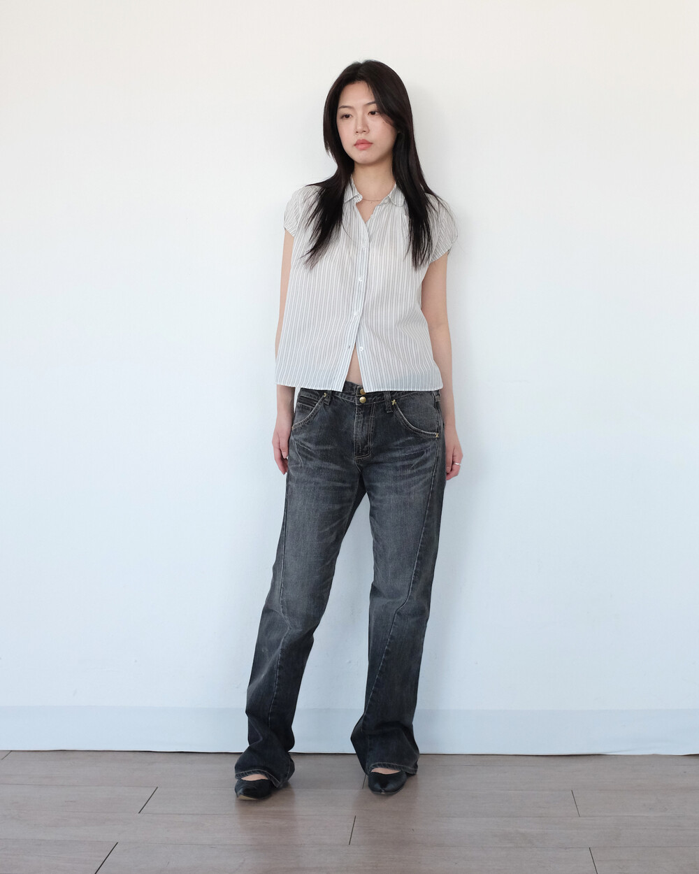 하의의 경우 모델 사이즈에 맞게 허리 조절이 있을 수 있으므로
