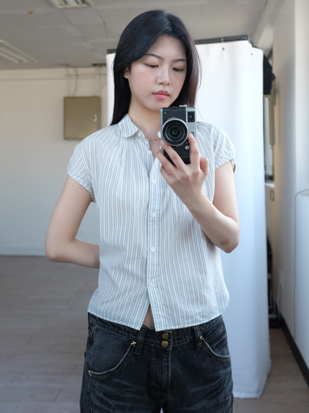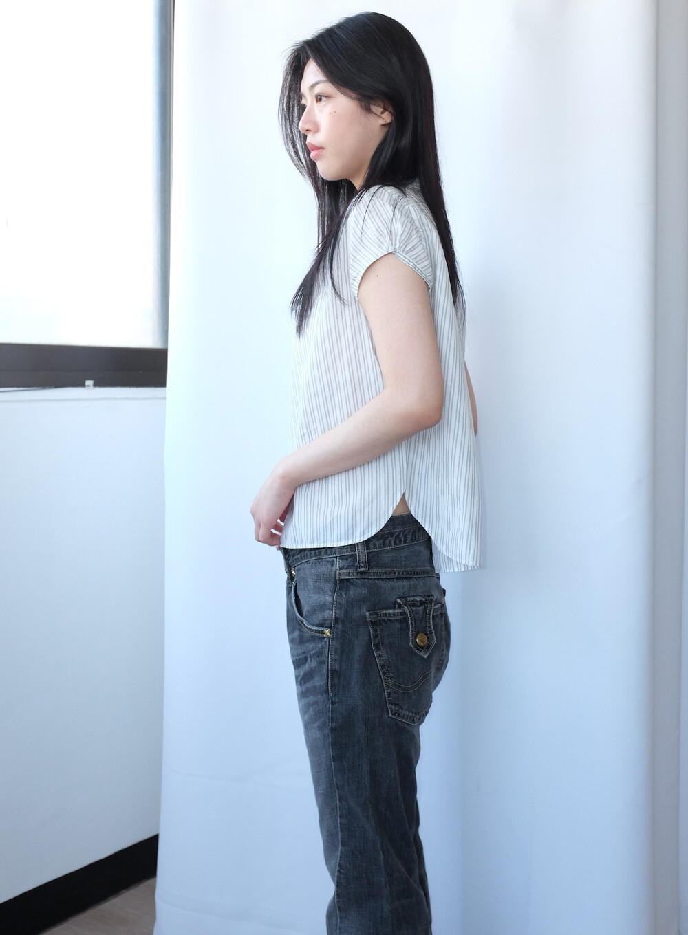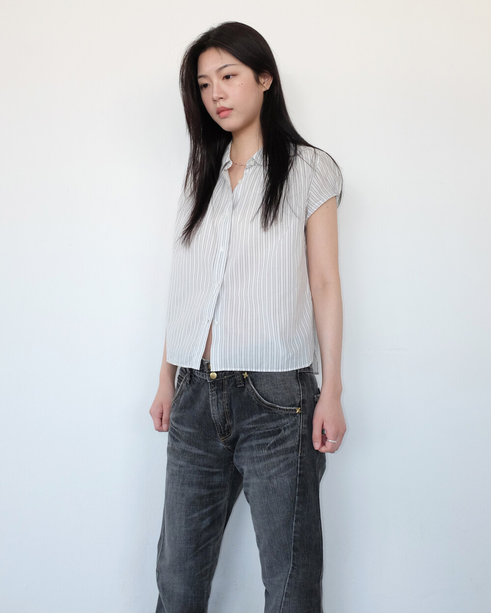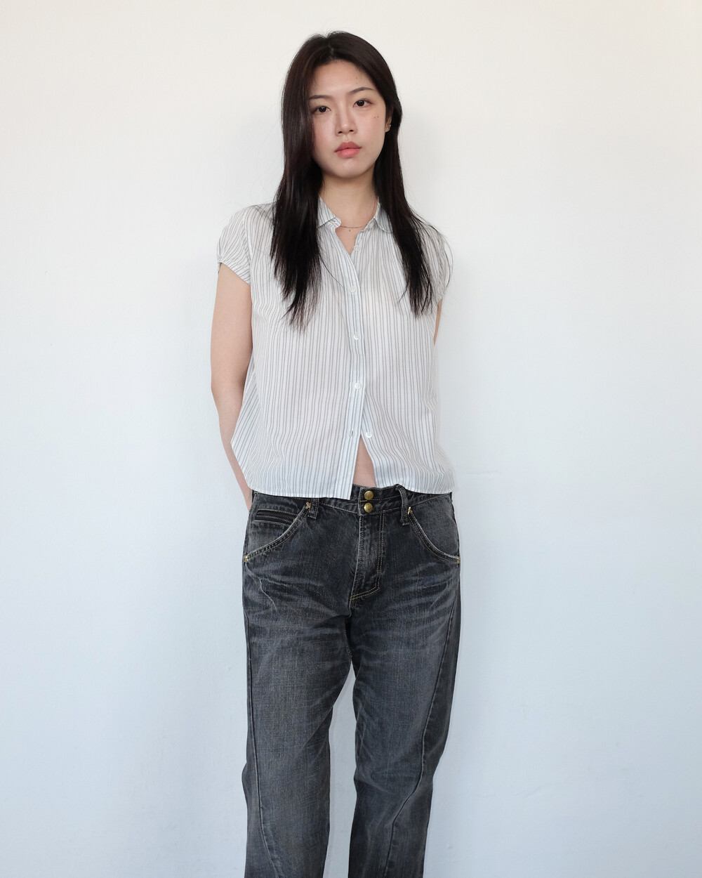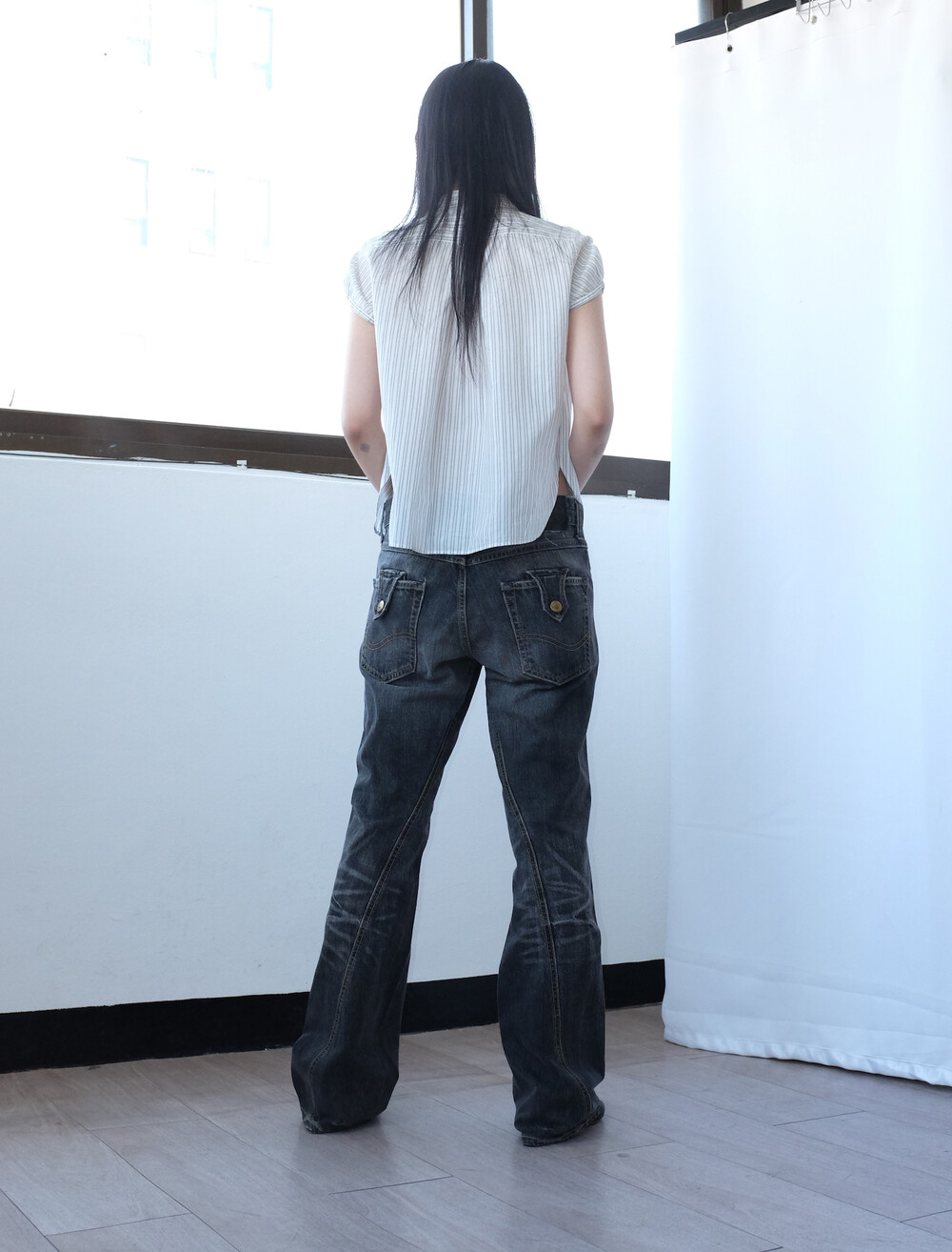 하의의 경우 모델 사이즈에 맞게 허리 조절이 있을 수 있으므로