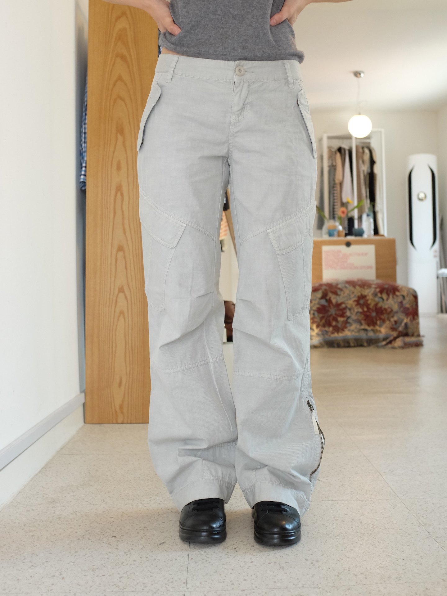 하의의 경우 모델 사이즈에 맞게 허리 조절이 있을 수 있으므로