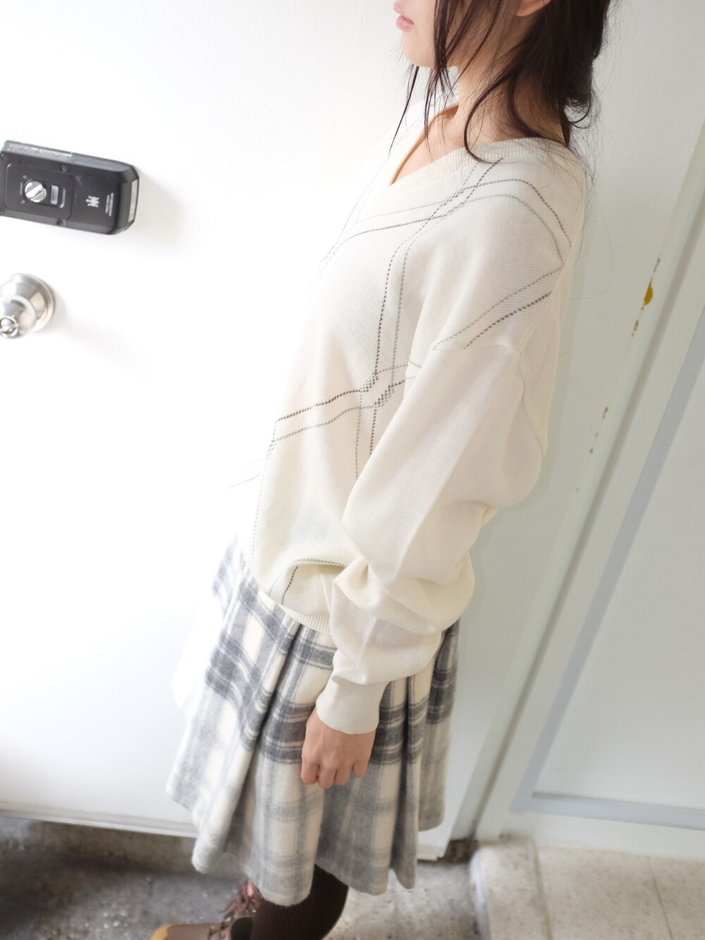 Vintage ivory pattern wool knit