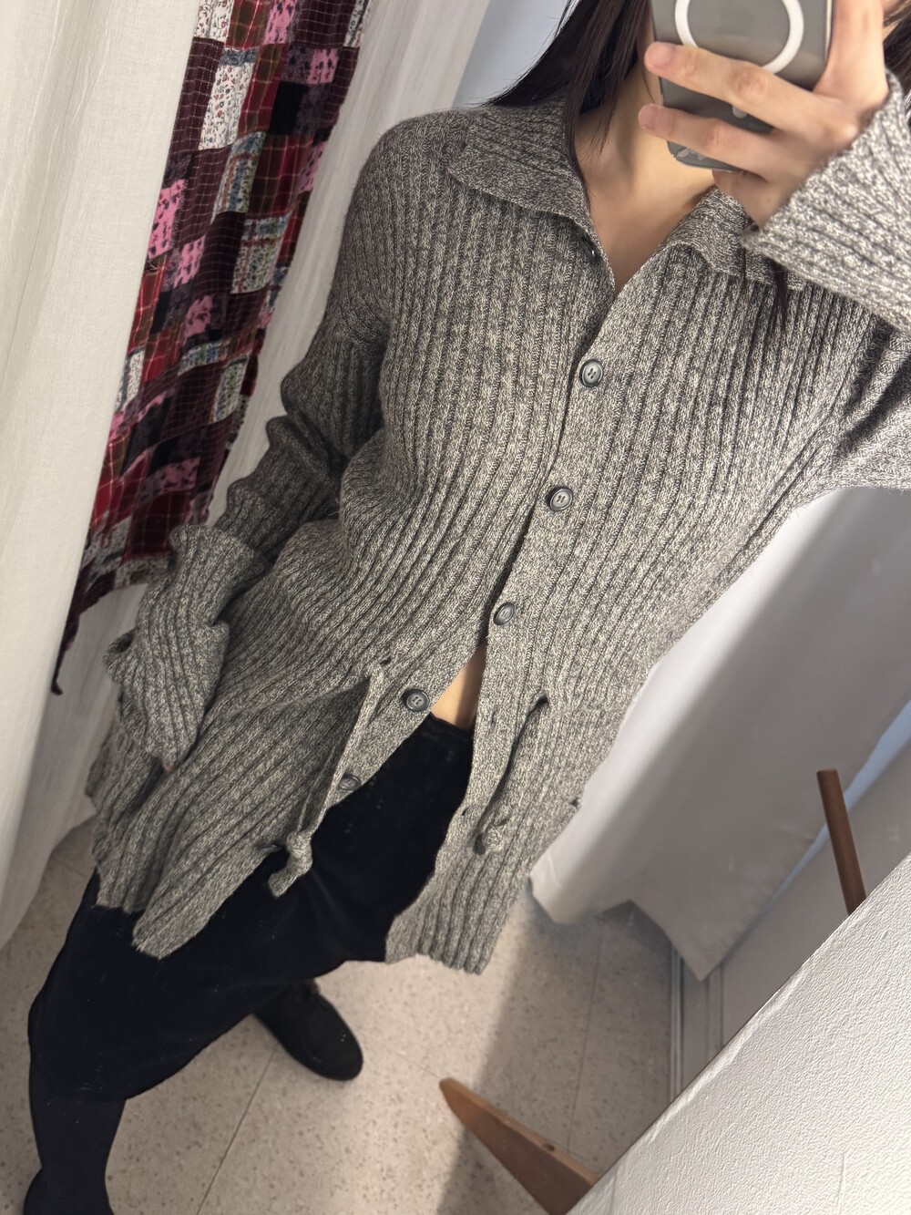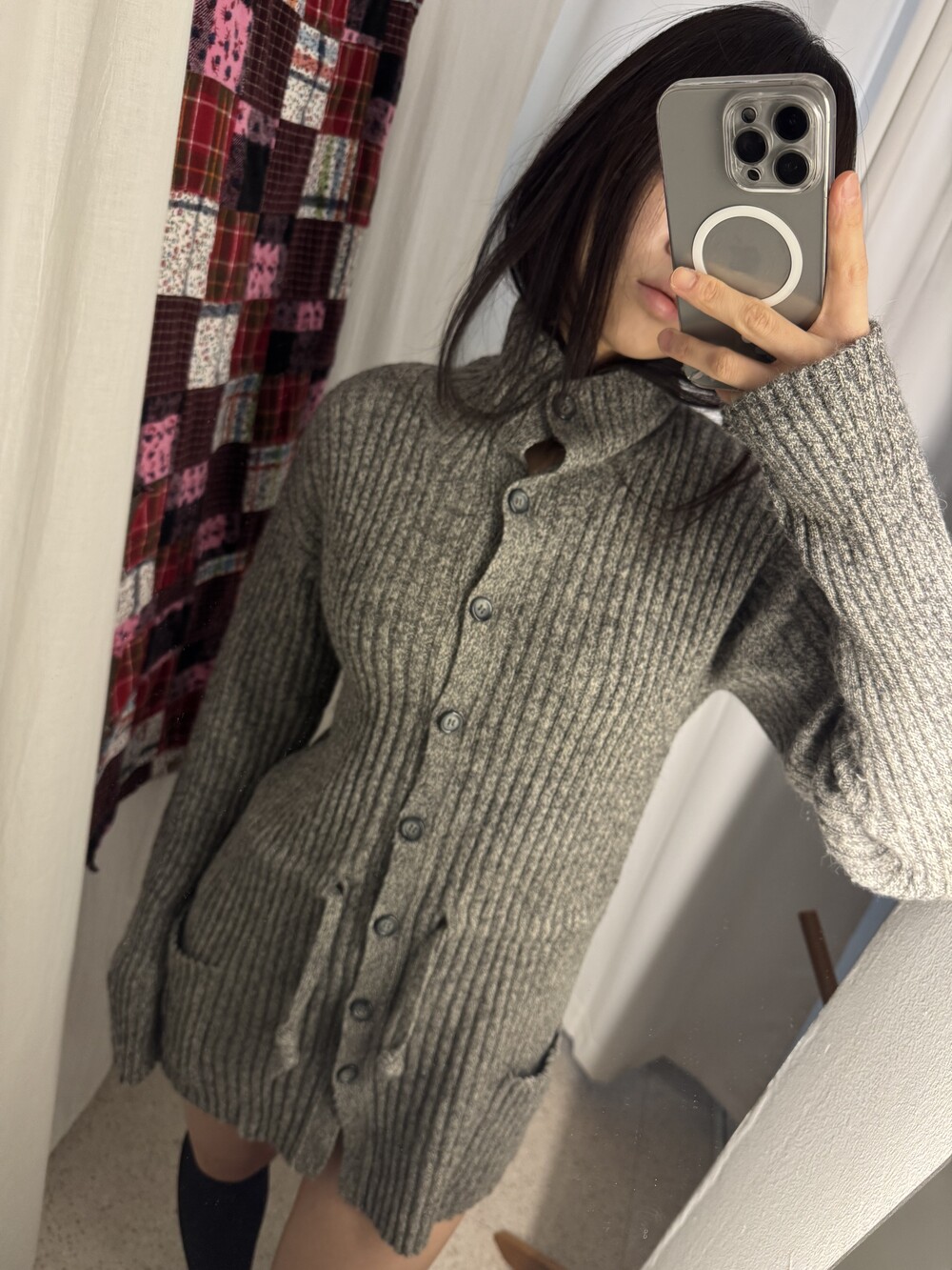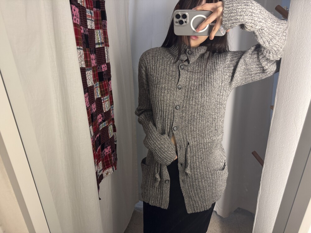 JPN VTG high-neck knit midi cardigan