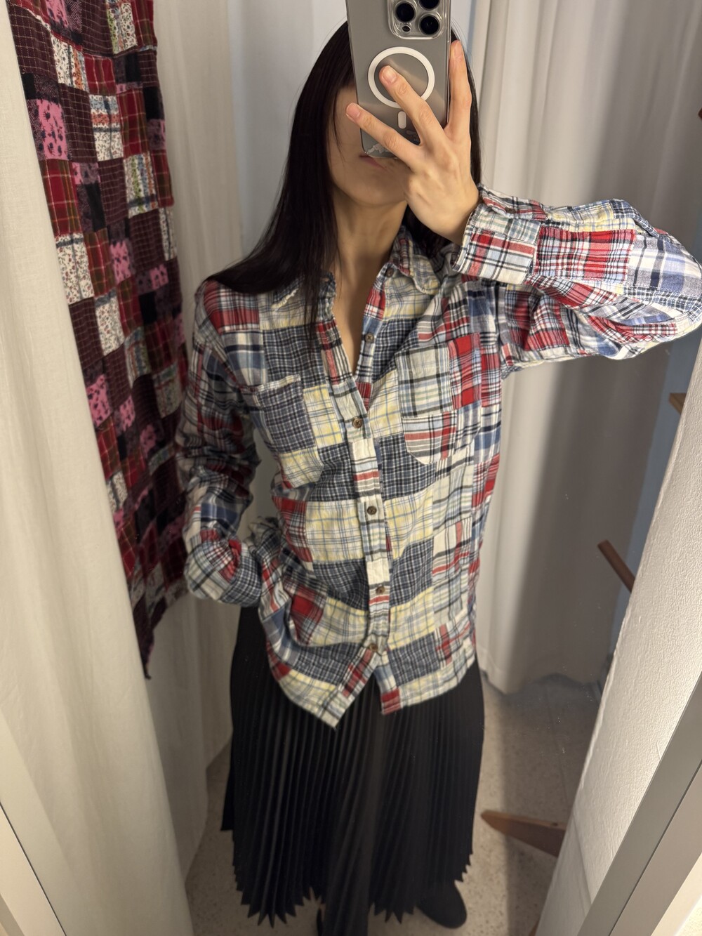 JPN VTG patchwork check shirt