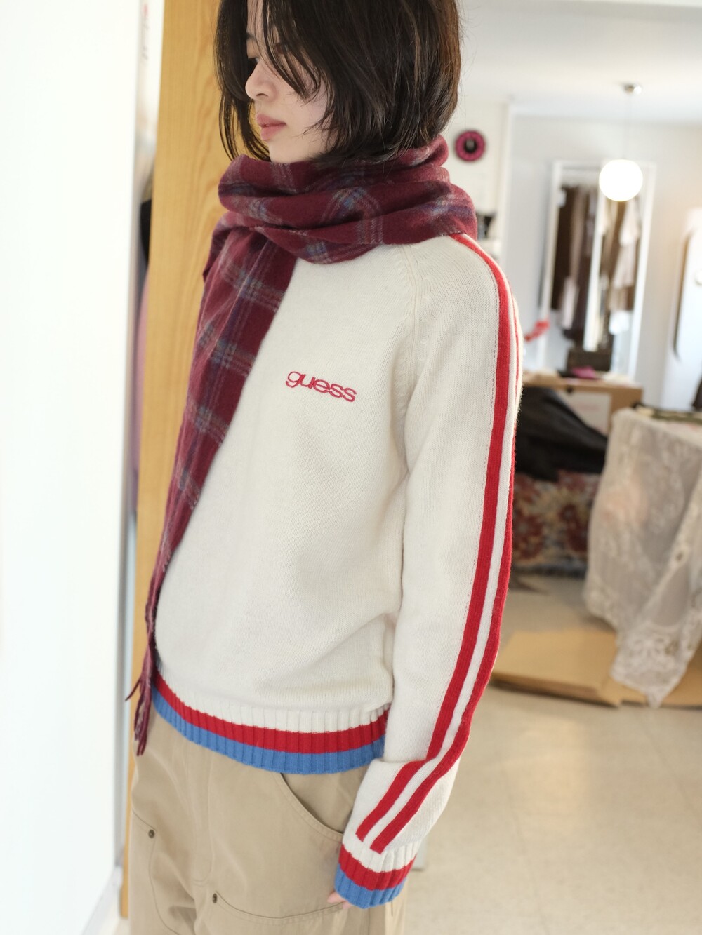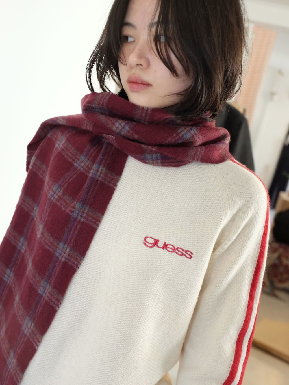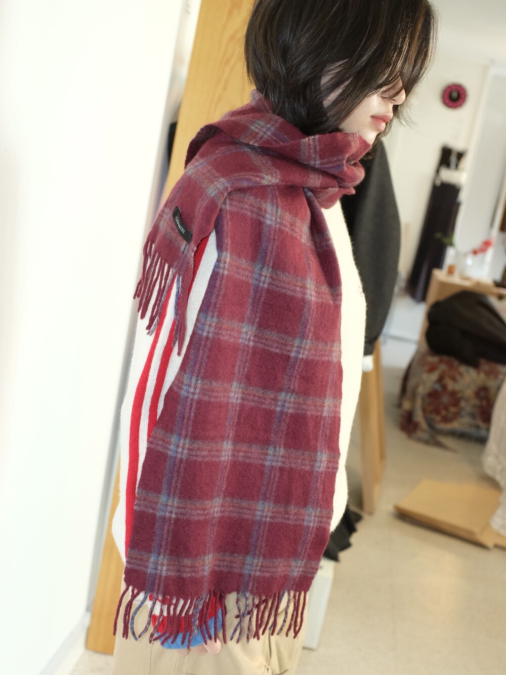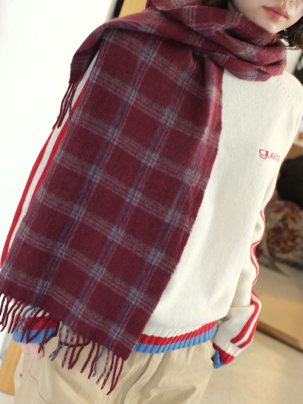 Vintage check cashmere muffler