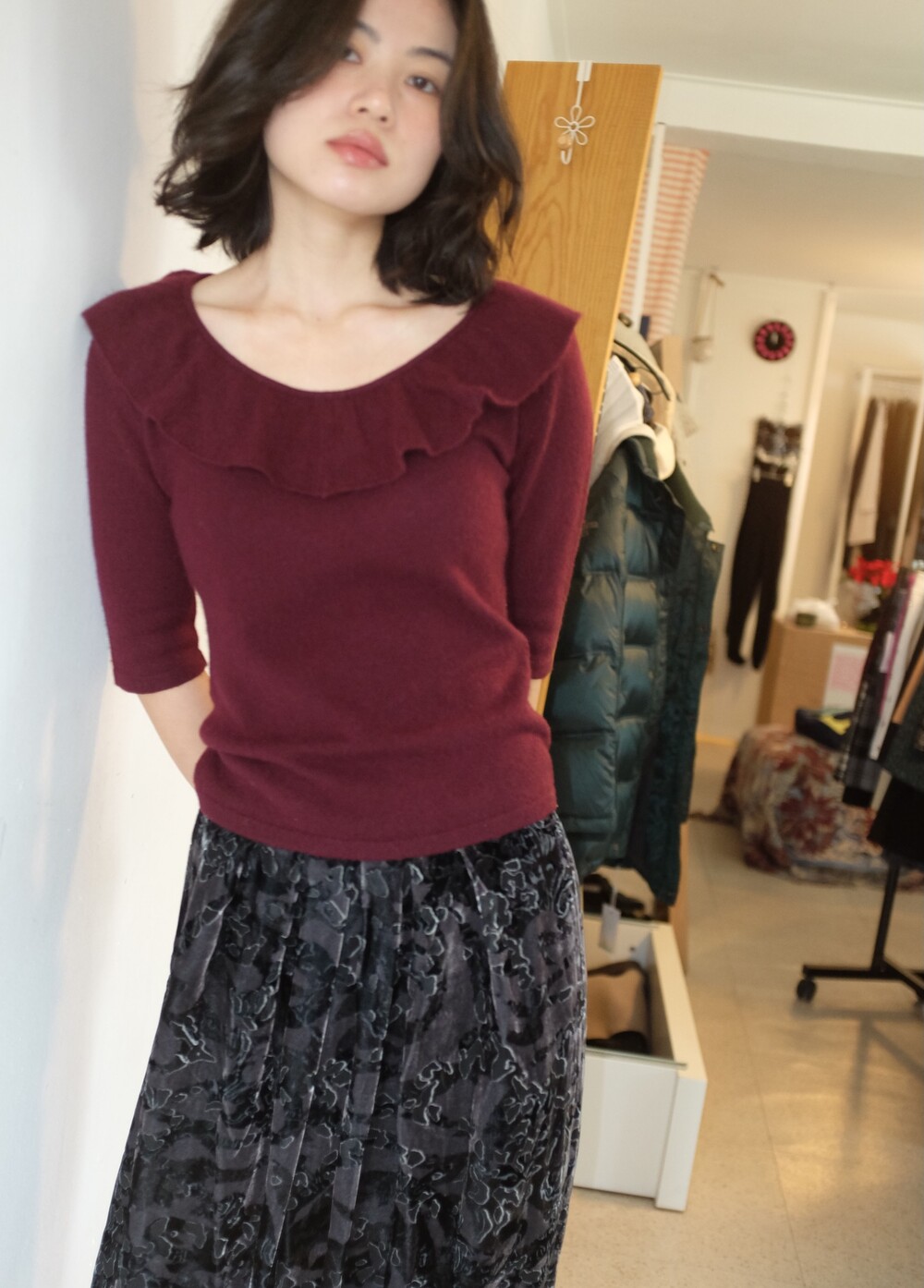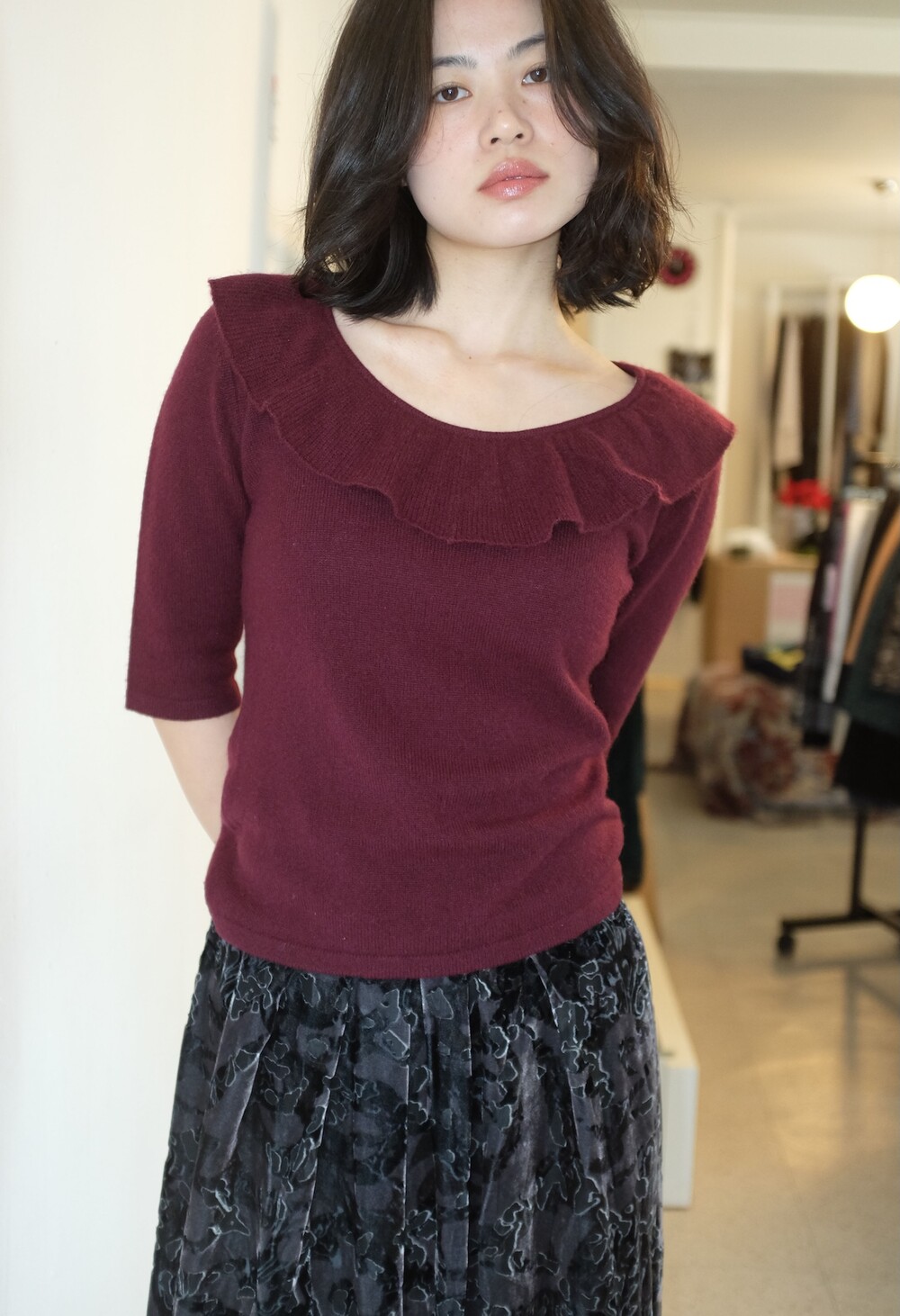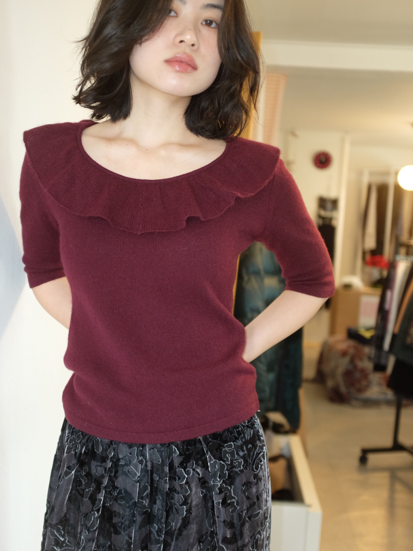 Vintage cashmere frill knit