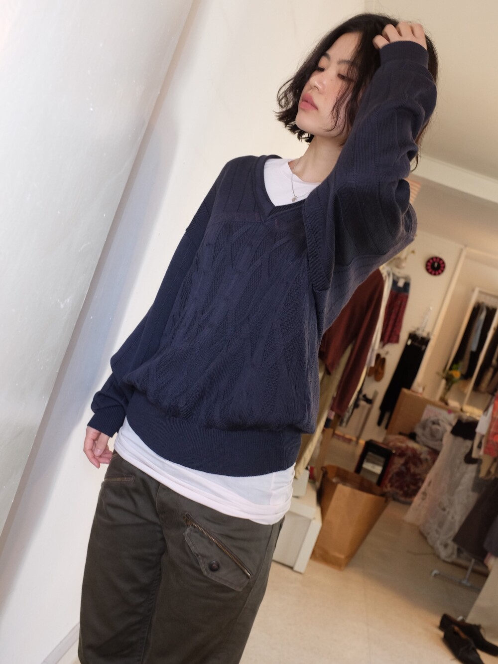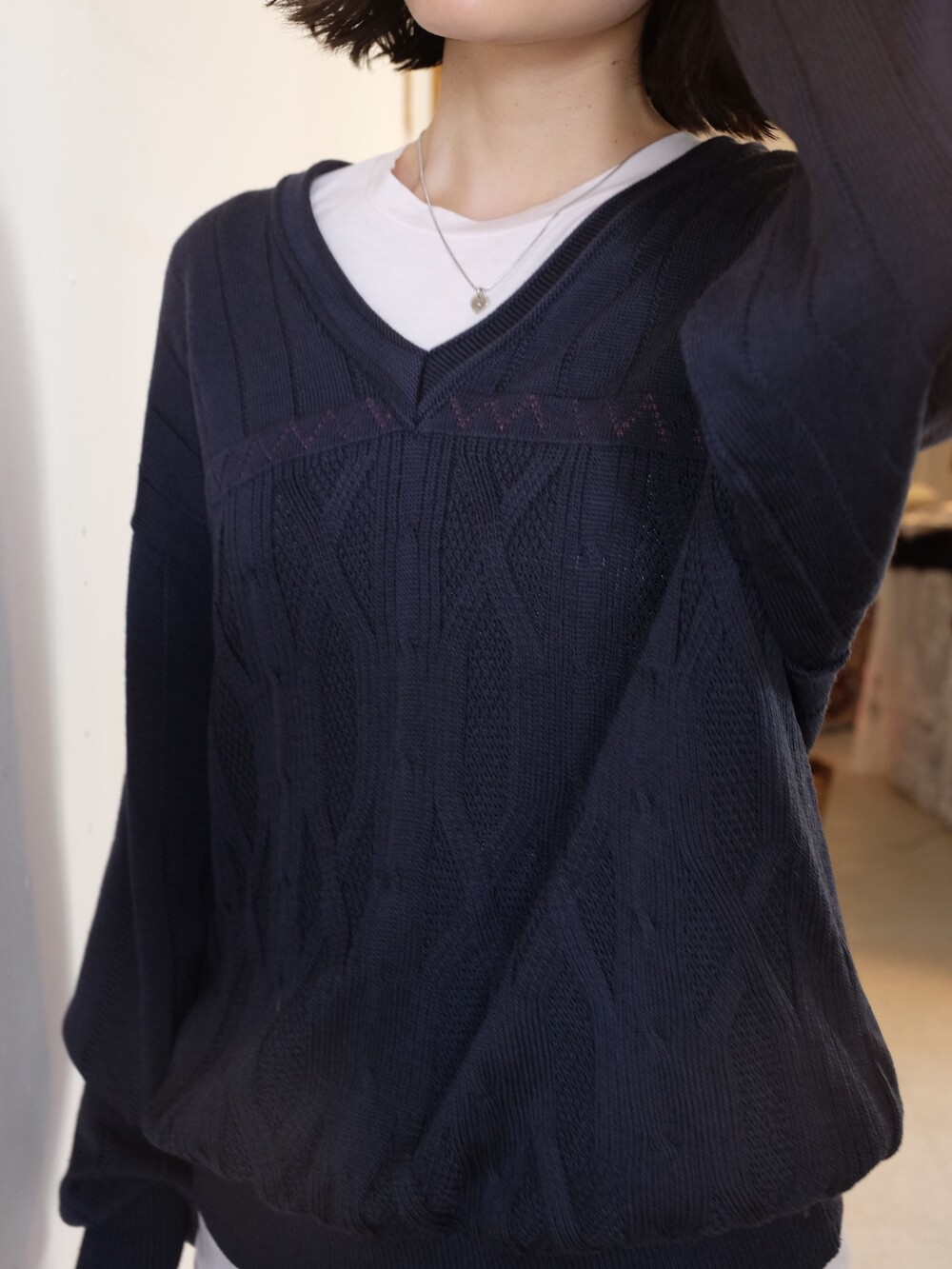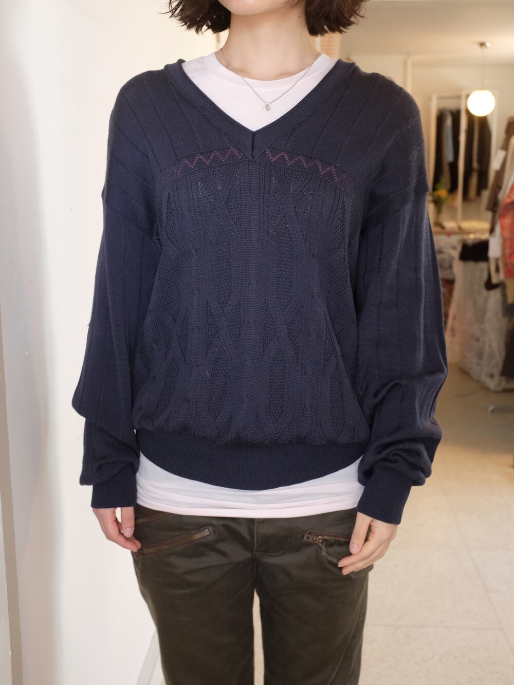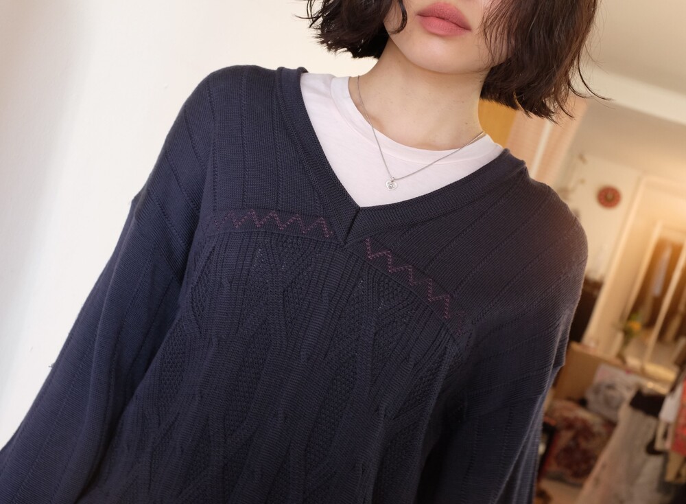 Vintage pattern navy wool knit