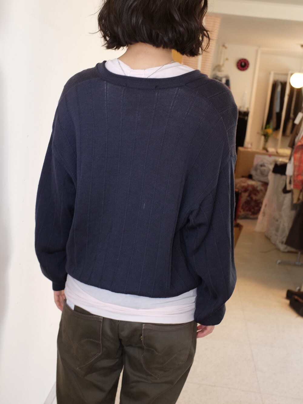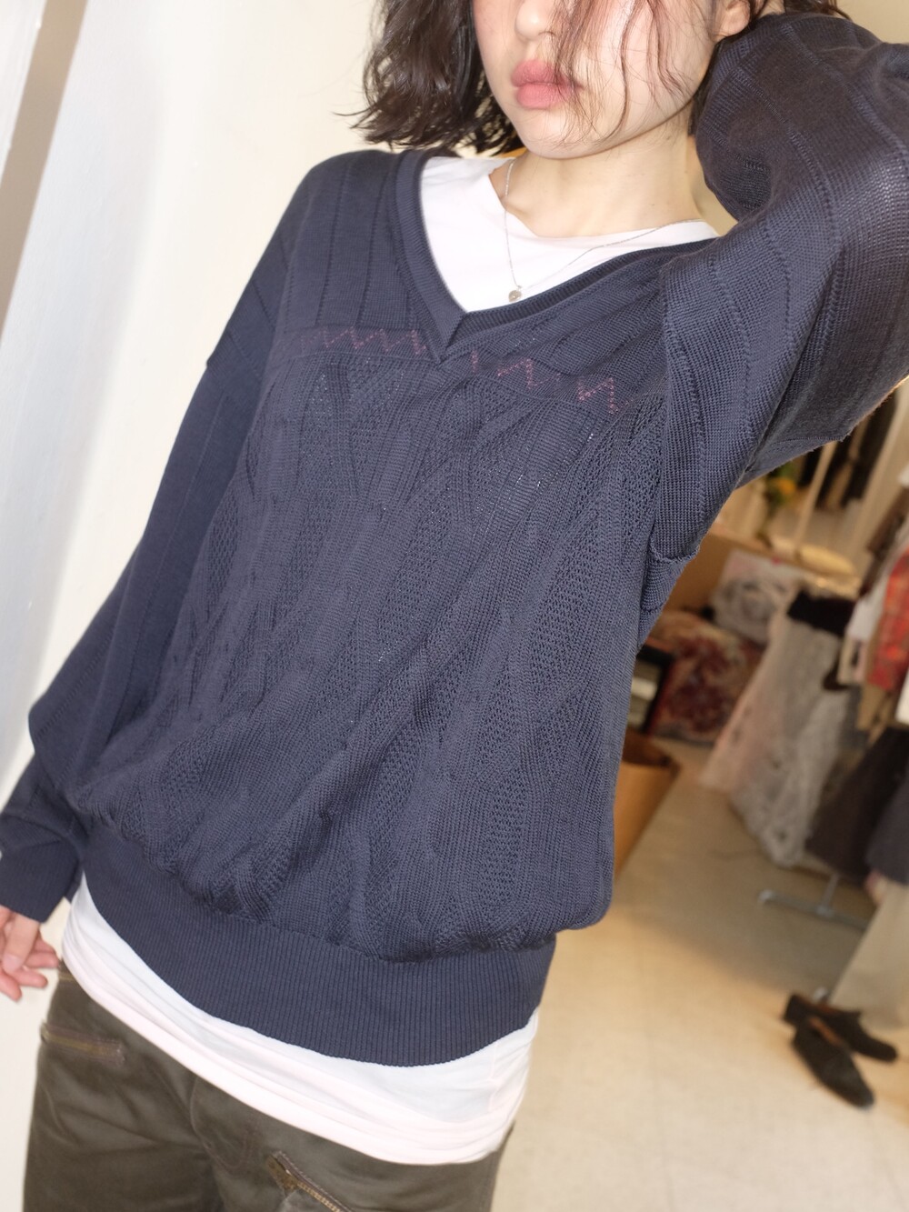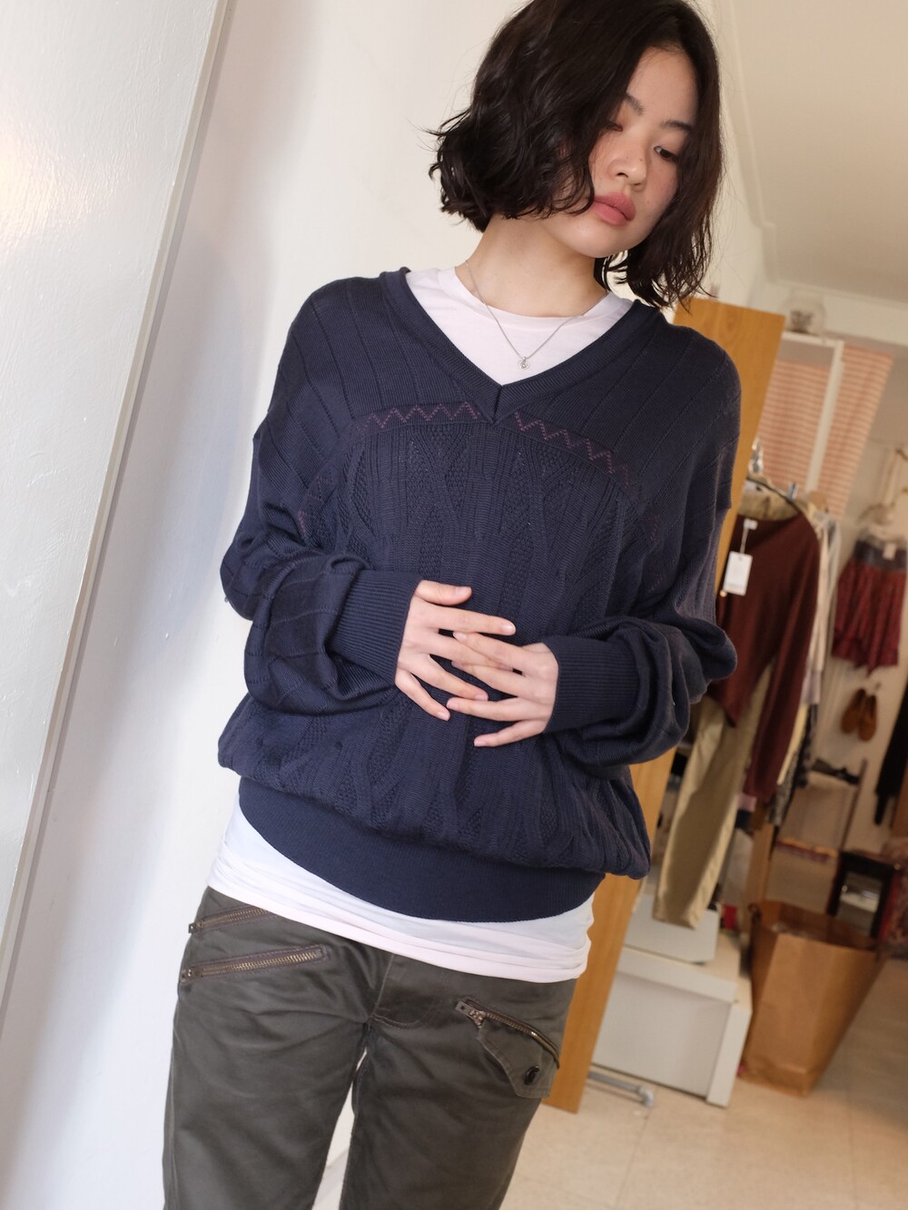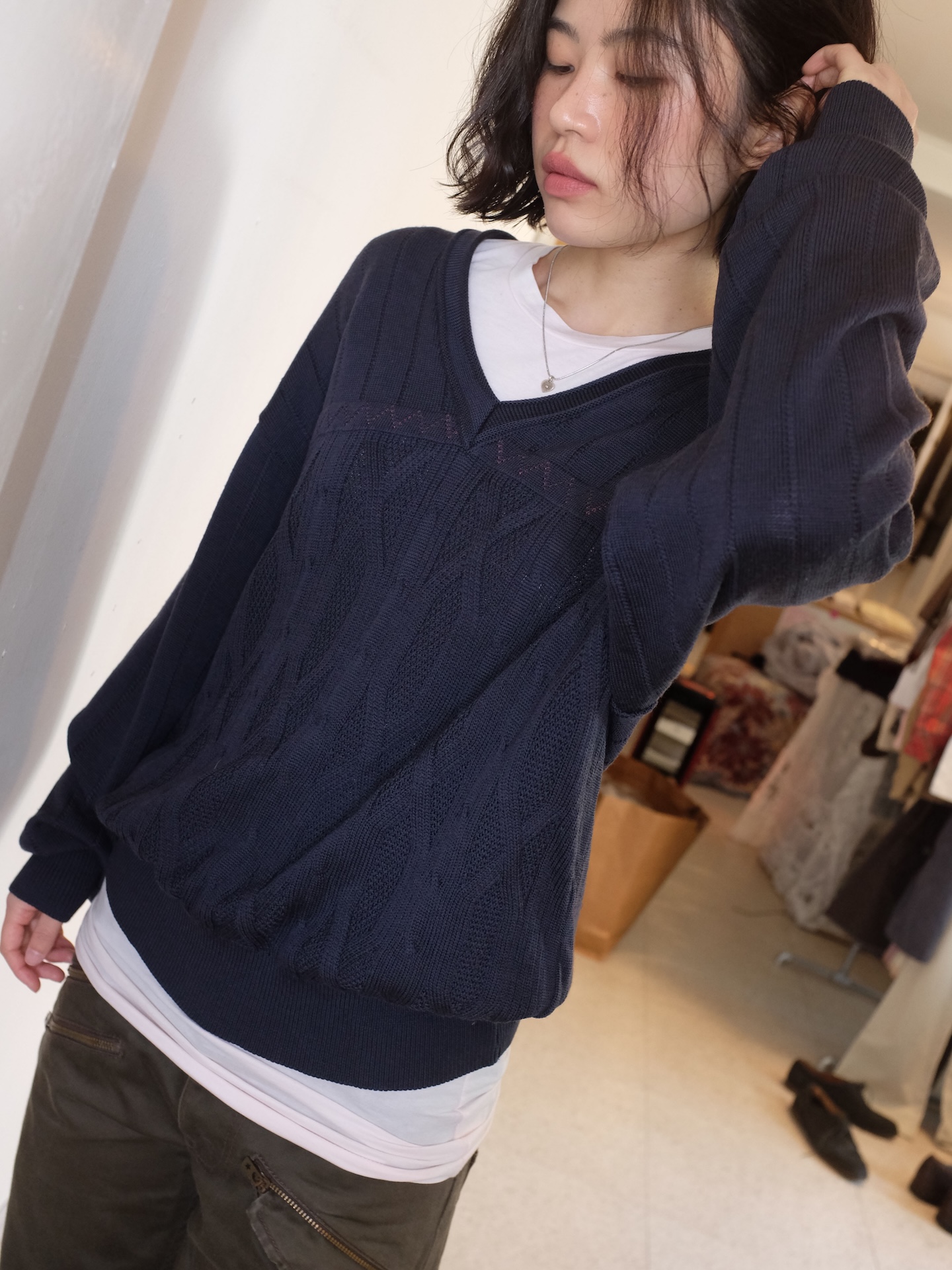 Vintage pattern navy wool knit
