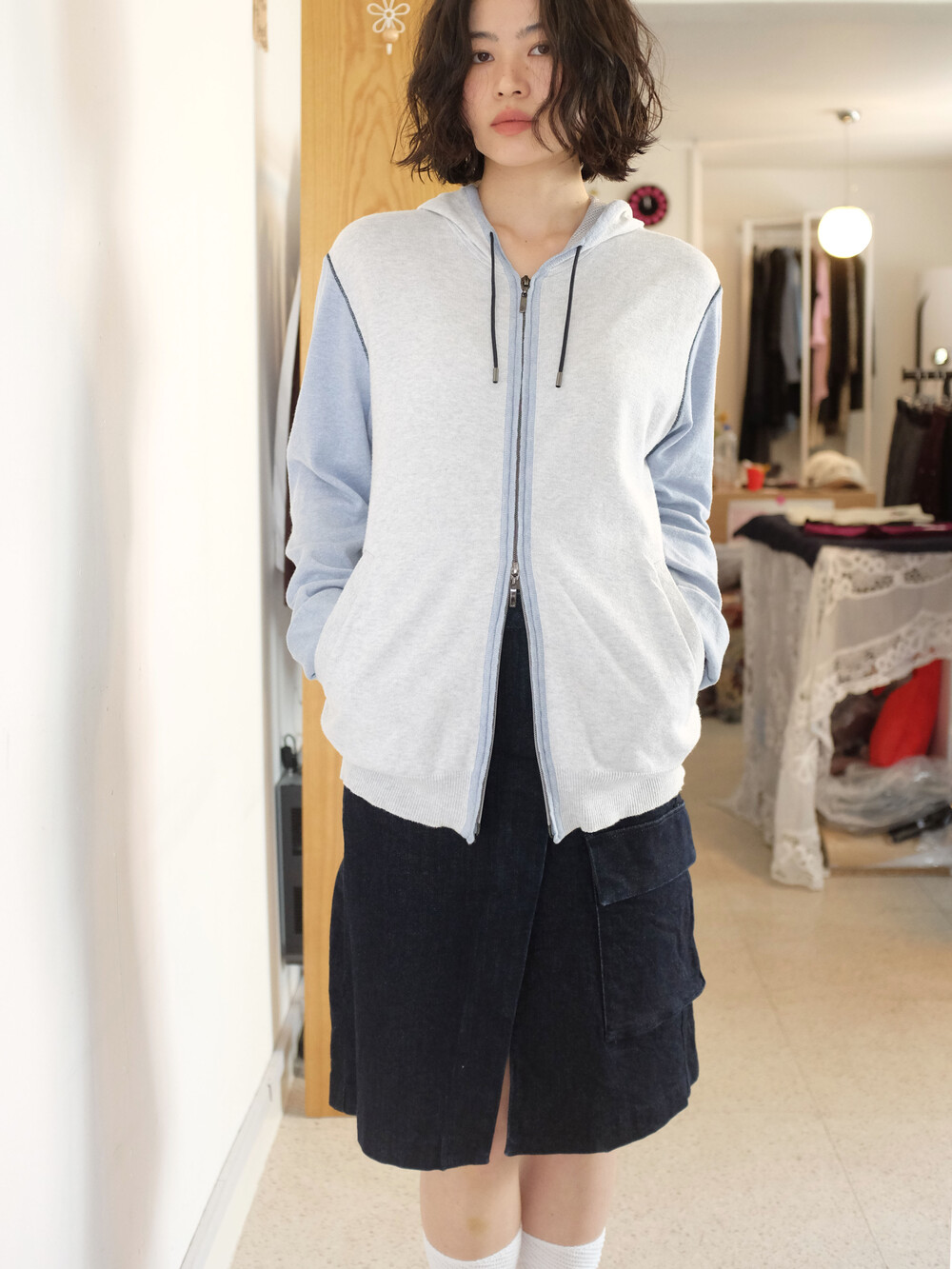 하의의 경우 모델 사이즈에 맞게 허리 조절이 있을 수 있으므로