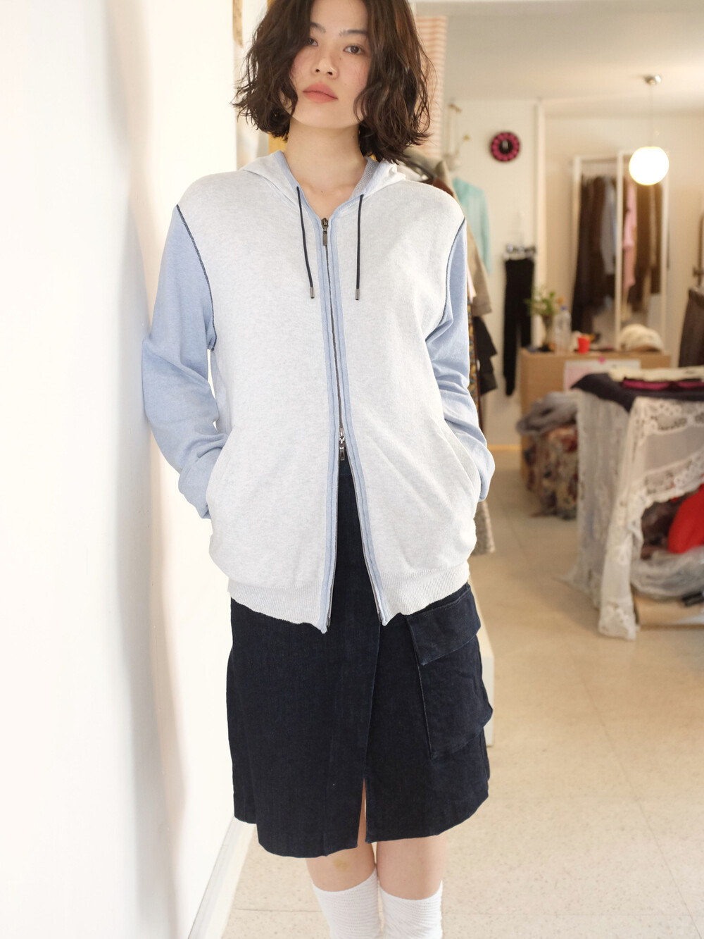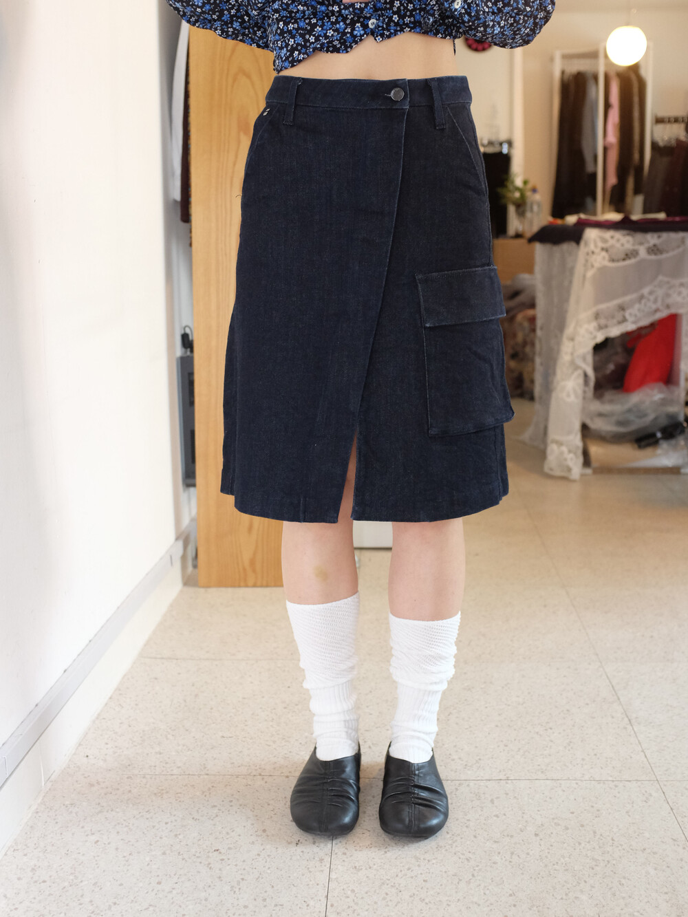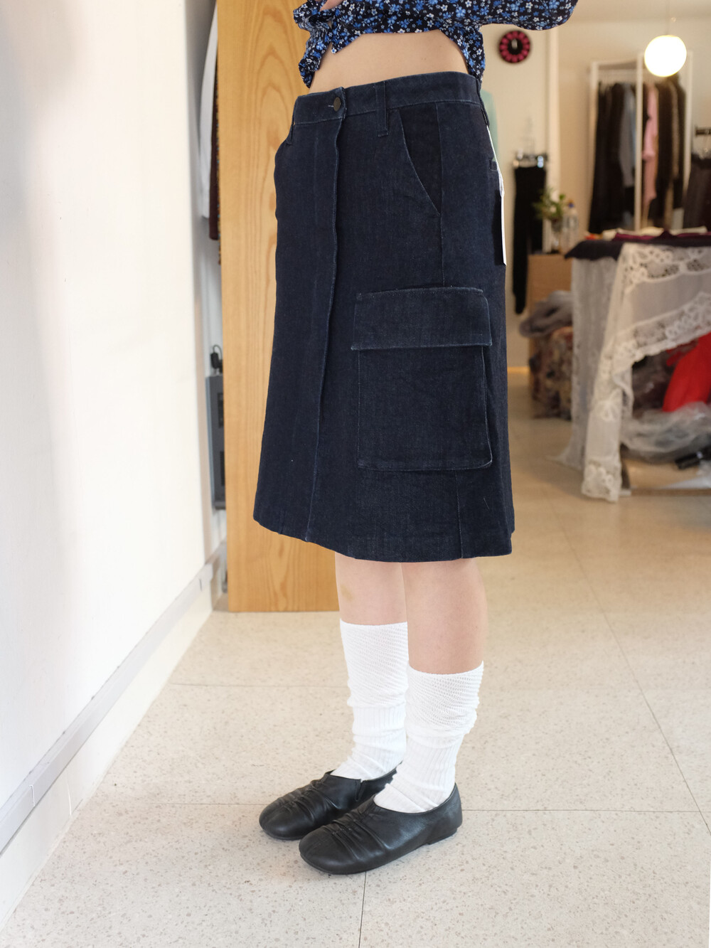 BACK NUMBER pocket denim skirt