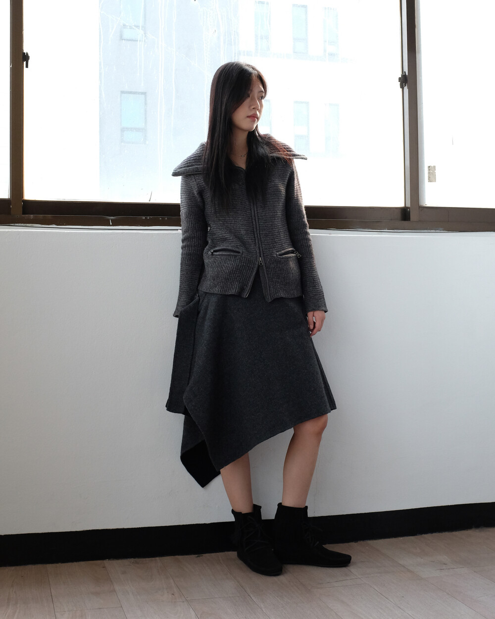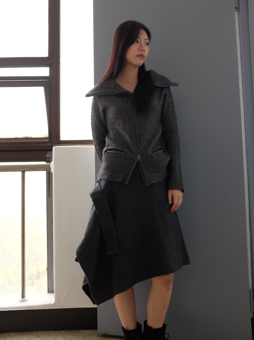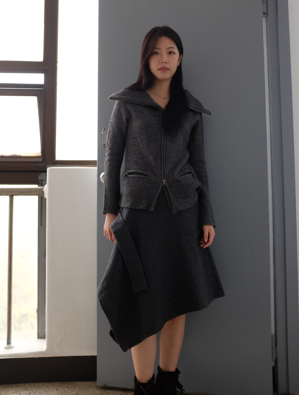 ZUCCA wool side belt skirt